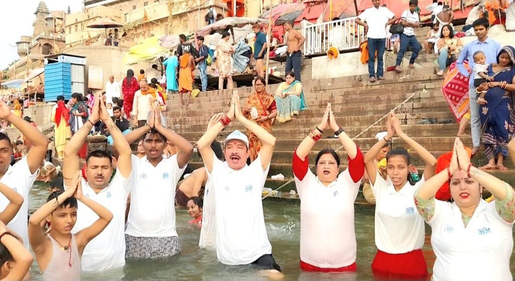 इसलिए जल को सुरक्षित और संरक्षित रखना नितांत आवश्यक है। आने वाले समय में जो समस्याएं बढ़ती जा रही हैं, उसके लिए जल शक्ति को बढ़ाने की जरूरत है। कहा कि योगमय जीवन पद्धति ने समूचे विश्व को एक परिवार की तरह जोड़ कर रखा है। जल योग में प्रमुख रूप से काशी क्षेत्र के संयोजक राजेश शुक्ला , महानगर सहसंयोजक सरिका गुप्ता, पूजा मौर्या, आशीष गुप्ता, गुंजन गुप्ता, हंसल , देवेश, काशिका मिश्रा शामिल रहे।