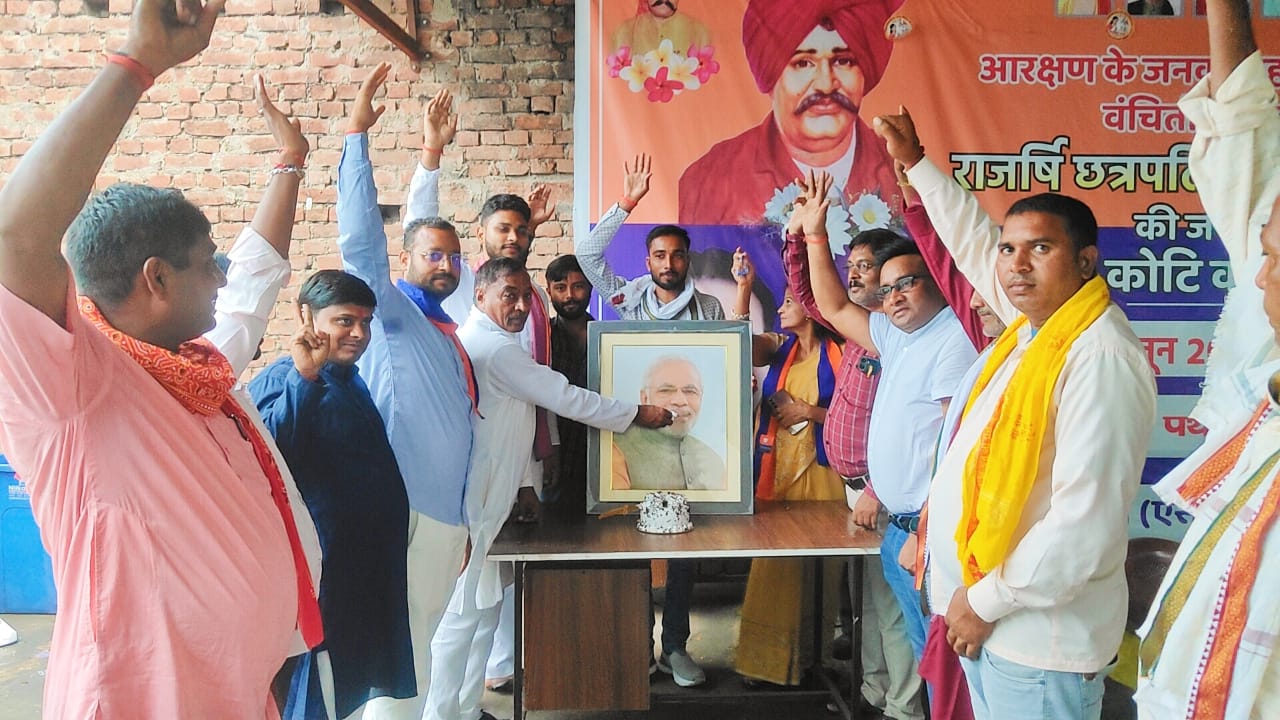 अपना दल एस के कार्यकर्ताओं ने मंगलवार को प्रधानमंत्री नरेन्द्र मोदी का जन्मदिन केक काटकर बड़े धूमधाम से मनाया