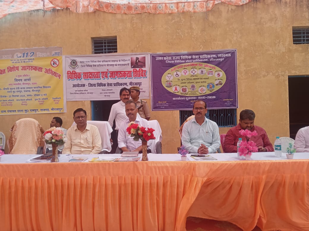 मिर्ज़ापुर जिला विधिक सेवा प्राधिकरण मीरजापुर तथा स्वास्थ्य विभाग के संयुक्त तत्वावधान में माननीय जनपद न्यायाधीश / अध्यक्ष जिला विधिक सेवा प्राधिकरण अनमोल पाल के आदेशानुसार ग्राम ददरा मुतलके रामपुर सुधनादेवी उच्च कन्या माध्यमिक विद्यालय परिसर में 25 सितम्बर को आयोजित तम्बाकू निषेध जागरूकता शिविर शुभारम्भ अपर जनपद न्यायाधीश / सचिव डीएलएसए विनय आर्या ने माँ सरस्वती की प्रतिमा पर माल्यापूर्ण कर किया।