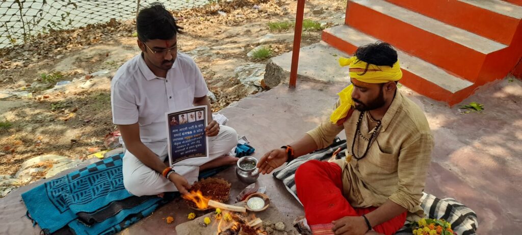 आम आदमी पार्टी के प्रदेश प्रवक्ता मुकेश सिंह ने बताया की लोकसभा के परिणाम आने मे कुछ ही दिन शेष है और सभी दल एड़ी चोटी का जोर लगा रहे अपने हित मे परिणाम लाने के लिए इसी बीच आम आदमी पार्टी के छात्र इकाई छात्र युवा संघर्ष समिति (सीवाईएसएस) के प्रदेश उपाध्यक्ष व वाराणसी मण्डल के प्रभारी रघुकुल यथार्थ ने लोक सभा चुनाव मे आईएनडीआईए गठबंधन के जीत हेतु नगवा, सामने घाट स्थित हनुमान घाट वाराणसी पर हवन-पूजन किया। रघुकुल यथार्थ ने वक्तव्य के माध्यम से बताया कि इस लोकसभा चुनाव मे आईएनडीआईए गठबंधन के जीत हेतु इश्वर से प्रार्थना की गयी और आशीर्वाद मांगा गया। जिससे भारत मे एक नयी और जनकल्याणकारी सरकार केंद्र मे आयें और शोषित वंचित तथा अंतिम पंक्ति मे खड़े व्यक्ति तक विकास पहुंच सके जिससे देश के एक सौ चालीसा करोड़ जनता का उम्मीद और सपना सच हो सके।