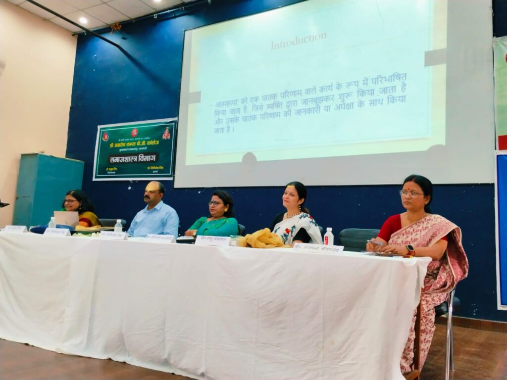 Varanasi: श्री अग्रसेन कन्या पी. जी.कॉलेज, वाराणसी में समाजशास्त्र एवम् मनोविज्ञान विभाग के संयुक्त तत्वावधान में विश्व आत्महत्या निवारण दिवस के अवसर पर ‘जीने का नजरिया बदलिए, इंतजार में है सुनहरा भविष्य ‘नामक”विषय पर एक दिवसीय संगोष्ठी का आयोजन किया गया। कार्यक्रम का प्रारंभ दीप प्रज्वलन एवम् अतिथियों के स्वागत से हुआ। प्राचार्य प्रो. मिथिलेश सिंह ने अभ्यागतों का स्वागत पुष्पगुच्छ एवं स्मृति चिन्ह प्रदान करके किया। कार्यक्रम की विषय स्थापना करते हुए प्रो कुमुद सिंह ने कहा कि आज आत्महत्या एक गंभीर विषय बन चुका है और इसके निवारण के लिए सामाजिक समरसता और परस्पर सहयोग अत्यंत आवश्यक है। कार्यक्रम की अध्यक्षता करते हुए प्राचार्य प्रो. मिथिलेश सिंह ने कहा कि प्रत्येक वर्ष विश्व में लाखों लोग किसी न किसी कारण से आत्महत्या करते हैं। वर्तमान परिदृश्य में भारत में भी इसकी संख्या में लगातार वृद्धि होती जा रही है । इसी समस्या पर चिंतन करने और लोगों को इसके प्रति जागरूक करने के उद्देश्य से प्रत्येक वर्ष 10 सितंबर को विश्व आत्महत्या निवारण दिवस मनाया जाता है। कार्यक्रम की मुख्य वक्ता डॉ. मीनाक्षी बाजपेई ,मनोविज्ञान विभाग, आर्य महिला पी. जी. कॉलेज , वाराणसी ने छात्राओं को संबोधित करते हुए कहा कि विश्व आत्महत्या निवारण दिवस आत्महत्या के प्रति जागरूकता का दिवस है क्योंकि आत्महत्या किसी भी समस्या का समाधान नहीं है। इसके साथ ही उन्होंने व्यक्ति में आत्महत्या संबंधी लक्षणों एवं उसको रोकने के उपायों की भी चर्चा की। कार्यक्रम के विशिष्ट वक्ता डॉ मिथिलेश सिंह ,असिस्टेंट प्रोफेसर ,समाजशास्त्र विभाग ,सावित्री बाई फुले राजकीय महिला पी. जी .कालेज , चकिया ने आत्महत्या के प्रमुख प्रमुख कारणो पर प्रकाश डाला। कार्यक्रम का संचालन प्रो आभा सक्सेना एवं धन्यवाद ज्ञापन डॉ आराधना श्रीवास्तव द्वारा किया गया। इस अवसर पर अनेक प्रवक्तागण एवं छात्राएं उपस्थित रही।