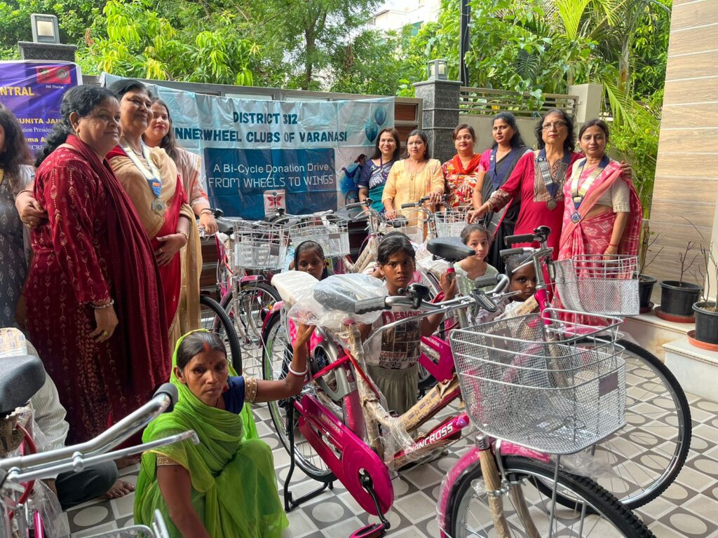 वाराणसी इनर व्हीलक्लब ऑफ वाराणसी द्वारा अपने सामाजिक दायित्व के निर्वहन में लड़कियों को आत्मनिर्भर बनाने के लिए 11 साइकिल का वितरण महमूरगंज स्थित गर्ग के निवास स्थान पर किया गया जिसमें डिस्ट्रिक्ट चेयरमैन आशा अग्रवाल ने इस साइकिल वितरण करते हुए बताया कि यह वितरण बच्चियों को आत्मनिर्भर बनाने शिक्षा ग्रहण कर देश की उन्नति में योगदान एवं समाजिक स्तर पर समरसता एवं आत्मविश्वास जगाने का भरपूर कार्य करेगा बच्चियां साईकिल प्राप्त कर बहुत ही खुश हुई और संकल्प लिया कि इस सवारी रूपी जीवन की गाड़ी से अपने कैरियर को नई दिशा देने का पूरा प्रयास करके एक जिम्मेदार नागरिक की भूमिका निभाएंगे