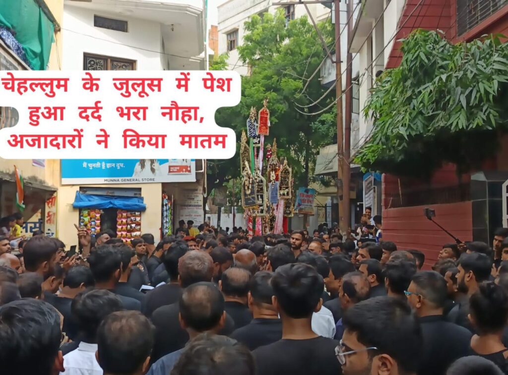 उधर वक्फ मस्जिद व इमामबाडा मौलाना मीर इमाम अली व मेहदी बेगम गोविन्दपुरा कला छत्तातले से चेहल्लुम का जुलूस मुतवल्ली सै• मुनाजिर हुसैनी मंजू के जेरे इन्तेजाम उठा। जुलूस उठने से पूर्व मजलिस को खेताब फरमाते हुए मौलाना ने कर्बला का वाक्या पेश किया। जुलूस उठने पर शुजाअत अली खां कब्बन मिर्जा व साथियों ने सवारी पढी जब गोरे गरीबाँ से वतन में हरम आज जुलूस धीरे धीरे छत्तातला गुदड़ी बाजार होते हुए दालमंडी हकीम काजमी के अजाखाने पहुंचा जहां से शबीहे जुलजनाह बरामद हुआ और अंजुमन हैदरी चौक ने नौहाख्वानी व मातम शुरू किया। ऐ अहले अजा बैठे क्या हो फरजंदे नबी का चेहलुम है। जुलूस नई सडक काली महल पितरकुण्डा होते हुए लल्लापुरा स्थिति फातमान पहुंचकर इकतेदाम पदीर होगा ऐसे ही इमामबाड़ा कच्चीसराय दालमंडी से सैयद इकबाल हुसैन लाडले हसन की देखरेख में जुलूस उठाया गया। जुलूस की देखरेख अंजुमन जव्वादिया ने की। जुलूस दालमंडी नई सड़क फाटक शेख सलीम काली महल होकर दरगाहे फातमान पहुंचा। इस दौरान दर्द भरा नौहा गूंजी है कर्बला में सदा मैं हुसैन हूं नाना मेरे रसूले खुदा मैं हुसैन हूं पढ़ा तो तमाम लोगों की आंखें नम हो गई। जुलूस में शकील अहमद जादूगर भीड़ को कंट्रोल कर रहे थे। समाचार लिखे जाने तक जुलूस जारी था।