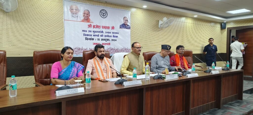 वाराणसी। उत्तर प्रदेश के उपमुख्यमंत्री ब्रजेश पाठक ने अपने एक दिवसीय वाराणसी भ्रमण कार्यक्रम के दौरान मंगलवार को सर्किट हाउस सभागार में अधिकारियों के साथ विकास कार्यों की समीक्षा बैठक आवश्यक दिशा निर्देश दिए। उन्होंने निर्देशित करते हुए कहा कि जनपद में 70 वर्ष के ऊपर के सभी व्यक्तियों का कैंप लगाकर अभियान चला कर आयुष्मान कार्ड बनाए जाने की कार्यवाही शीघ्रातिशीघ्र कर लिया जाए। उन्होंने सभी इंपैनल्ड अस्पतालों की सूची का भी आमजन में प्रचार-प्रसार कराए जाने पर विशेष जोर दिया। ताकि लाभार्थियों को इसकी जानकारी रहे।