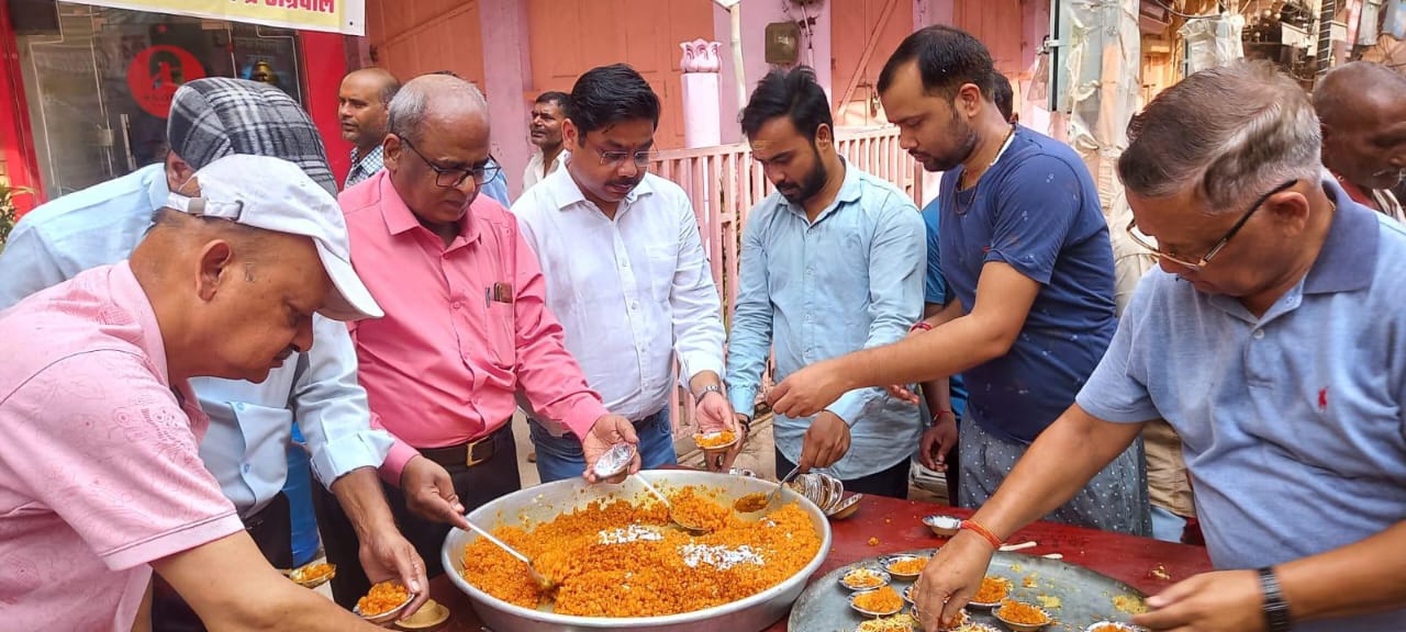 प्रसाद वितरण में मृदुला अग्रवाल अंकुर अग्रवाल का विशेष सहयोग रहा। इस अवसर पर प्रमुख रूप से संकल्प संस्था के संरक्षक अनिल कुमार जैन संतोष अग्रवाल कर्णघंटा राजेंद्र अग्रवाल माड़ी वाले गिरधर दास अग्रवाल मद्रास क्लाथ लव अग्रवाल पवन राय अमित श्रीवास्तव भईया लाल मनीष सहित संस्था के अन्य सदस्य व सहयोगी उपस्थित रहे।
