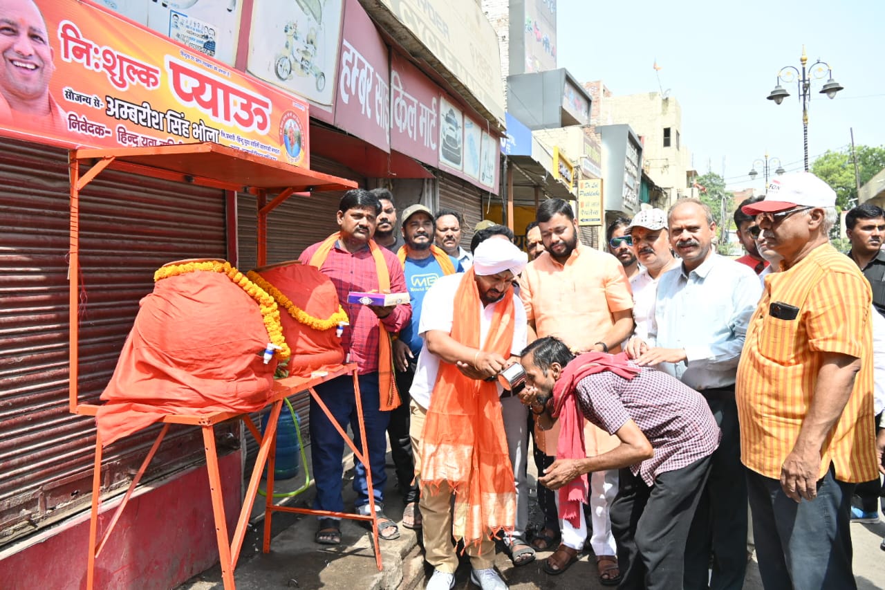 वाराणसी| हिन्दू युवा वाहिनी वाराणसी व त्रिशक्ति सेवा फाउंडेशन के संयुक्त तत्वावधान में विगत कई सालों से शीतल पेयजल के लिए नि:शुल्क प्याऊ का संचालन किया जा रहा है। इस बार भी नगर में प्याऊ खोला गया है। मैदागिन, लहुराबीर के बाद शुक्रवार सुबह वंदना गर्ल्स हॉस्टल मोड़ (पिपलानी कटरा सरोजा पेट्रोल पंप के सामने) पर प्याऊ का शुभारंभ मुख्य अतिथि कबीर रोड व्यापार मंडल के अध्यक्ष शनि जौहर जी और वाराणसी विकास प्राधिकरण के मानद सदस्य व हिंदू युवा वाहिनी के निवर्तमान मंडल प्रभारी अंबरीष सिंह भोला ने किया। शनि जौहर ने कहा कि हिंदू युवा वाहिनी की तरफ से कोरोना काल से लेकर अब तक काफी सराहनीय कार्य किया जा रहा है। भीषण गर्मी में प्याऊ लगाकर लोगों को राहत भरा फैसला किया गया है। वहीं भोला ने बताया कि वाराणसी में पड़ रही भीषण गर्मी को देखते हुए इस बार भी शहर में प्याऊ लगाए जा रहे हैं। अब लोगों को पानी के लिए परेशान नहीं होना पड़ेगा। इस मौके पर कबीर रोड व्यापार मंडल के महामंत्री कीर्ति प्रकाश पाण्डेय जी , उपाध्यक्ष सोहन लाल चौरसिया जी, दिनेश अग्रहरी, विनोद अग्रहरी, विकास अग्रहरी, दीपक साहू,मुन्ना साहू, विष्णु अग्रवाल,प्रमोद चौरसिया,रवि विश्वकर्मा, विक्रांत सेठ आदि लोग उपस्थित रहे।।