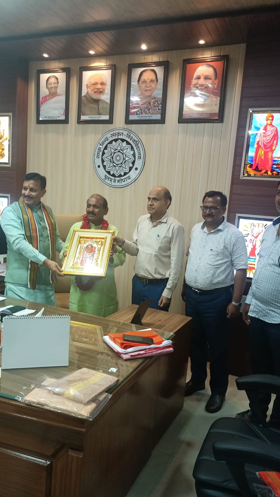सम्पूर्णानन्द संस्कृत विश्वविद्यालय, वाराणसी के कुलपति प्रो बिहारी लाल शर्मा ने कुलपति कार्यालय में जनसम्पर्क कार्यालय में कार्यरत कर्मचारी नरसिंह यादव को 40 वर्ष की सेवा के पश्चात सेवानिवृत्त होने एवं “कर्म ही पूजा” के कार्यक्रम पर माल्यार्पण,अंगवस्त्र एवं स्मृति चिन्ह देकर प्रोत्साहित किया। इस अवसर पर उन्होंने कहा कि सेवा की भावना से कार्य करने से सम्पूर्ण कार्य सिद्ध होते हैं।इस कार्यक्रम का मूल मंत्र ही कर्म को पूजा बताया गया है।सदैव सभी कर्मचारियों को समर्पण एवं सेवा की भावना से कार्य करें।