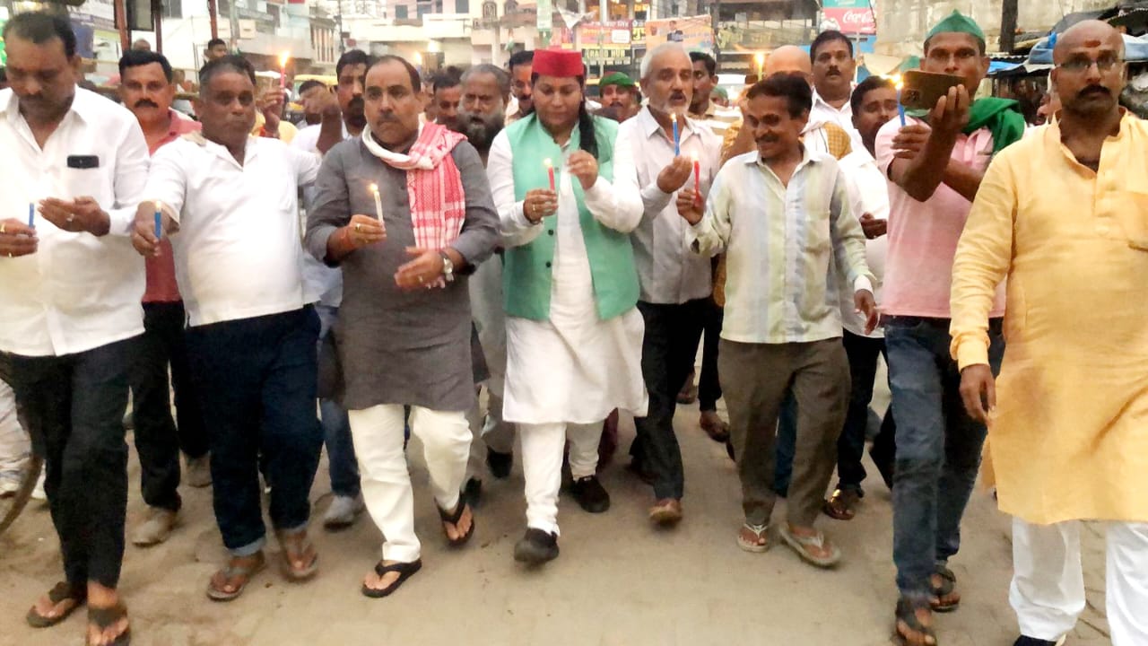 कांग्रेस जनों ने कैंडल जलाकर मृतक मजदूर मेवा लाल को श्रद्धांजलि अर्पित किया