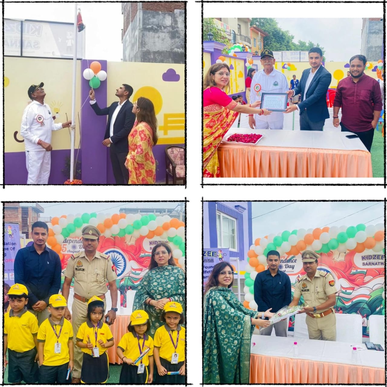 वाराणसी सारनाथ स्थित किट जी स्कूल के डायरेक्टर आशीष मिश्रा द्वारा ध्वजारोहण किया गया आशीष मिश्रा ने बताया कि 15 अगस्त के मौके पर स्कूल में बच्चों द्वारा रंगारंग कार्यक्रम एवं देशभक्ति गीत पर कार्यक्रम किया गया जिसमें बच्चों ने बढ़-चढ़कर हिस्सा लिया नन्हे मुन्ने बच्चों द्वारा कार्यक्रम को देखकर अभिभावक भाव विभोर हो गए आशीष मिश्रा ने बताया कि किटजी स्कूल में बच्चों को उचित शिक्षा एवं शिक्षा के संग संग बच्चों में संस्कार के पाठ मुख्य रूप से पढ़ाई और सिखाई जाती हैं आज 15 अगस्त के मौके पर बच्चों ने जिस तरह से रंगम कार्यक्रम प्रस्तुत किया है यह बहुत ही सराहनीय एवं उत्साह पूर्वक है हम लोग निरंतर बच्चों के छोटी-छोटी चीजों पर ध्यान देते हैं कि बच्चे किस दिशा में जा रहे हैं किस में उनका विशेष मन लग रहा है उसी के तहत हम लोग बच्चों को गाइडलाइन करते हैं और बच्चों को उस दिशा के विषय में बताते हैं आज 15 अगस्त के मौके पर हम लोगों ने बच्चों के संग शपथ लिया है कि एक पेड़ अवश्य लगाए जिससे हमारे पर्यावरण में हरियाली आए स्कूल में मुख्य अतिथि के रूप में ब्रिगेडियर केपीएन सिंह रिटायर एवं अभय पांडे सारनाथ एवं अभिभावक गण मौजूद रहे