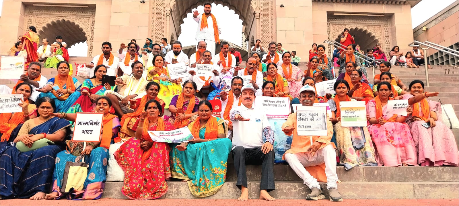 ‘ मतदान हमारा है अनमोल, नहीं है इसका कोई मोल’ , ‘ सब मिलकर मतदान करेंगे स्वस्थ लोकतंत्र का निर्माण करेंगे’, ‘लोकतंत्र का यह आधार , वोट कोई न हो बेकार,’लोकतंत्र का महापर्व है मतदान , सब मिलकर बढ़ाओ काशी की शान, जैसे मतदान को जागरूक करते नारे मतदान के एक दिन पूर्व शनिवार को श्रीकाशी विश्वनाथ धाम के गंगा द्वार पर गूंजते रहे । लोकतंत्र को मजबूत बनाने और मतदाताओं को जागरूक करने व स्वच्छता को संस्कार में शामिल करने के लिए नमामि गंगे काशी क्षेत्र के संयोजक राजेश शुक्ला के संयोजन में मतदान एवं स्वच्छता के लिए जागरूक करती तख्तियों के साथ नमामि गंगे की टीम कर्नाटक से पधारे सैकड़ो पर्यटकों के साथ उतर पड़ी । इस दौरान कर्नाटक में अपने मत का प्रयोग कर चुके सैकड़ो पर्यटकों ने ध्वनि विस्तारक यंत्र से शत-प्रतिशत मतदान का संदेश दिया । बड़े हों या जवान सभी करें मतदान के लिए जागरूक करते हुए नमामि गंगे काशी क्षेत्र के संयोजक राजेश शुक्ला ने कहा कि हमारे पास मतदान के रूप में सुअवसर है भारत को समृद्धिशाली , आत्मनिर्भर व राष्ट्र को समर्पित सरकार बनाने का । आयोजन प्रमुख रूप से काशी क्षेत्र के संयोजक राजेश शुक्ला , महानगर संयोजक शिवदत्त द्विवेदी, सैकड़ो पर्यटक, क्षेत्रीय नागरिक शामिल रहे ।