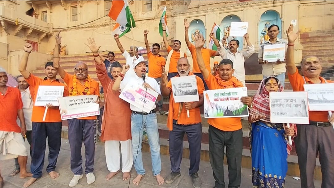 Varanasi: लोकसभा चुनाव को लेकर मतदाता जागरूकता और पर्यावरण संरक्षण का कार्यक्रम मंगलवार को अहिल्याबाई घाट पर नमामि गंगे व शिवगंगा दैनिक प्रभात फेरी काशी की ओर से आयोजित हुआ। चुनाव पर्व देश का गर्व व लोकतंत्र का है आधार वोट कोई न हो बेकार स्लोगन से गंगा घाटों पर उपस्थित नागरिकों को मतदान के लिए जागरूक किया गया। मतदान की शपथ के बीच ‘सबका साथ हो गंगा साफ हो’ के नारे भी गूंजे । नमामि गंगे और शिवगंगा दैनिक प्रभात फेरी काशी के सदस्यों ने मतदाता जागरूकता गीत गाकर शत प्रतिशत मतदान के लिए प्रेरित किया । सदानीरा की स्वच्छता के लिए भी गीत गाए गए । नमामि गंगे काशी क्षेत्र के संयोजक राजेश शुक्ला ने बताया कि काशी सहित पूरे पूर्वांचल में लोकतंत्र के महापर्व पर पूरे परिवार के साथ जाकर मतदान करने की अपील हमने की है । गंगा घाटों पर स्वच्छता के साथ मतदान के प्रति लोगों को लगातार जागरूक किया जा रहा है , जिससे लोग मतों के सही अधिकार का प्रयोग कर सके और वाराणसी के मतदान प्रतिशत को बढ़ाने में वाराणसी के लोग भी सहयोग कर सके । आयोजन में प्रमुख रूप से नमामि गंगे काशी क्षेत्र के संयोजक राजेश शुक्ला, नरेंद्र बाजपेयी, राजेंद्र सिंह, सोहन सिंह, ओमप्रकाश सिंह पप्पू, रतन अग्रहरी, रमेश चौहान , श्रीनिवासन, अमृतवर्षिनी, लक्ष्मी आदि ने जागरूकता की ।