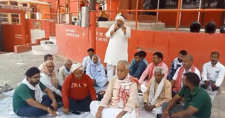 चिलचिलाती धूब में वाराणसी प्रधानमंत्री के किसान संवाद को खुली चुनौती देने हेतु किसानों ने तपती धूप में शास्त्री घाट पर बनायी व्यापक विरोध की गंभीर रणनीति