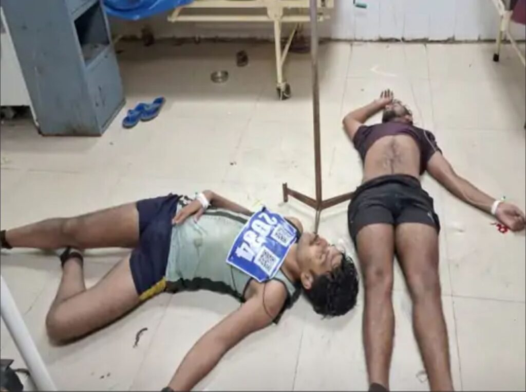 झारखंड उत्पाद सिपाही प्रतियोगिता परीक्षा 22 अगस्त से चल रही है। 60 मिनट में 10 किलोमीटर की दौड़ लगाने के दौरान अबतक 12 अभ्यर्थियों की मौत हो चुकी है। इनमें अधिकांश 25 वर्ष से कम के थे। तीन अभ्यर्थियों का पोस्टमार्टम रिम्स में हुआ।