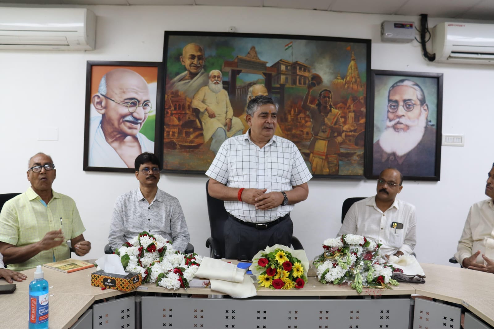 वाराणसी महात्मा गांधी काशी विद्यापीठ में बुधवार को राष्ट्रीय शैक्षिक महासंघ एवं राज्य विश्वविद्यालयों में कुलाधिपति द्वारा नियुक्त कार्य परिषद सदस्यों द्वारा कुलपति प्रो. आनन्द कुमार त्यागी स्वागत तथा अभिनन्दन किया गया। इस मौके पर प्रो. आनन्द कुमार त्यागी ने आभार व्यक्त करते हुए कहा कि सबके सहयोग से काशी विद्यापीठ का चहुमुखी विकास होगा। उन्होंने कहा कि पिछले कार्यकाल में विश्वविद्यालय ने कई उपब्धियां हासिल की। अब उसे और आगे बढ़ाना है। विश्वविद्यालय के अध्यापकों कर्मचारियों एवं छात्र छात्राओं के हित में कार्य करना है। उन्होंने कहा कि ऐसे पद जिनकों सरकार ने पेंशन देने से मना किया है उनके लिए हमने पेंशन फंड बनाने की योजना बनाई है। जिससे हम अपने शिक्षकों एवं कर्मचारियों को पेंशन दे सकें। साथ ही विश्वविद्यालय के खर्च में कटौती करते हुए आय बढ़ाने पर भी जोर देना है। प्रो. त्यागी ने कहा कि छात्रों की संख्या एवं जरूरत को देखते हुए शिक्षकों की नियुक्ति की जायेगी। साथ ही उन्होंने विश्वविद्यालय के विकास हेतु उपस्थित गणमान्यों से सलाह एवं सुझाव भी मांगे।