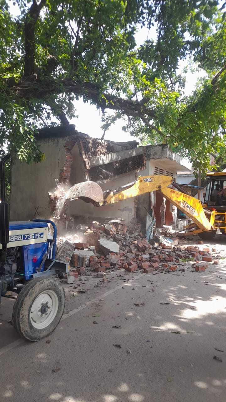 Varanasi: नगर आयुक्त अक्षत वर्मा के निर्देश पर सहायक नगर आयुक्त एवं जोनल अधिकारी वरूणापार अनिल यादव के नेतृत्व में पांचो पण्डवा स्थित शिवपुर थाने के पास रामभट्ट तालाब पर किये जा रहे कब्जे पर नगर निगम द्वारा बड़ी कार्यवाही करते हुये हो रहे अवैध निर्माण को गिरा दिया गया। नगर निगम को काफी दिनों से शिकायत प्राप्त हो रही थी कि कथित बाबा के द्वारा तालाब की भूमि को कब्जा कर अवैध निर्माण कराया जा रहा है, जिस पर नगर निगम द्वारा संज्ञान लेते हुये भूमि की पैमाइश करायी गयी, पैमाइश में भीटा के रूप में सम्पत्ति दर्ज थी, जिस पर सहायक नगर आयुक्त के द्वारा जे0सी0बी0 एवं नगर निगम प्रवर्तन दल के साथ मौके पर जाकर कराये जा रहे अवैध निर्माण को जे0सी0बी0 के माध्यम से गिरा दिया गया। अवैध निर्माण में एक सैलून, चाय की दुकान तथा कपड़े की दुकान संचालित की जा रही थी। नगर निगम के द्वारा पहले दुकानों का सामान निकाला गया, फिर अवैध निर्माण को ध्वस्त करा दिया गया। वर्तमान में मलबा उठाने का कार्य किया जा रहा है। वहीं पर तालाब के बगल में स्थित प्राचीन धर्मशाला पर काफी दिनों से एक बाबा के द्वारा कब्जा किया गया था, जिस पर उस धर्मशाला में किरायेदार एवं व्यवसायिक गतिविधियाॅ संचालित की जाती थी। नगर निगम द्वारा कार्यवाही करते हुये सभी को बाहर निकालकर धर्मशाला पर नगर निगम का ताला बन्द कर कब्जे में लिया गया।