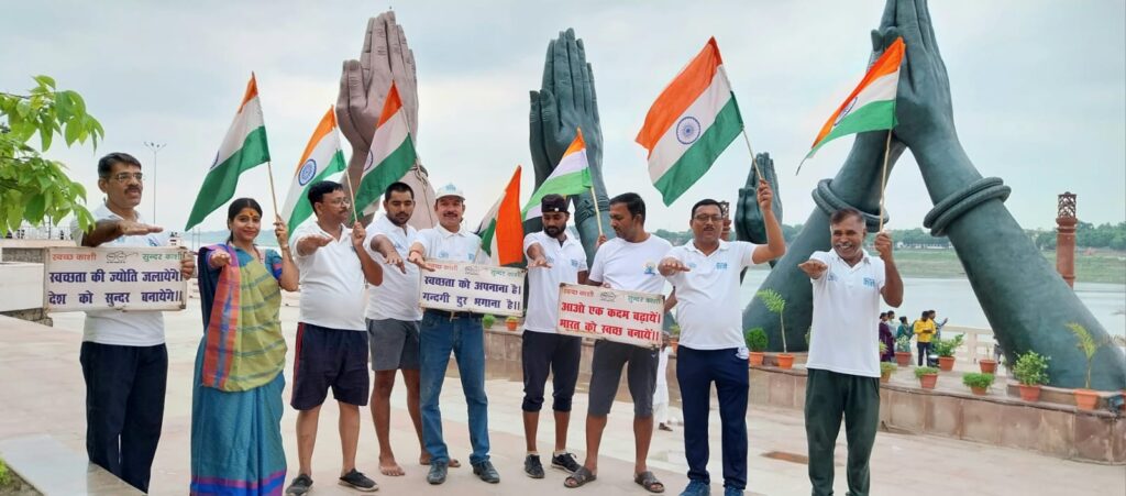 ” नमो घाट पर सफाई कर कचरा मुक्त गंगा घाट का किया आह्वान “