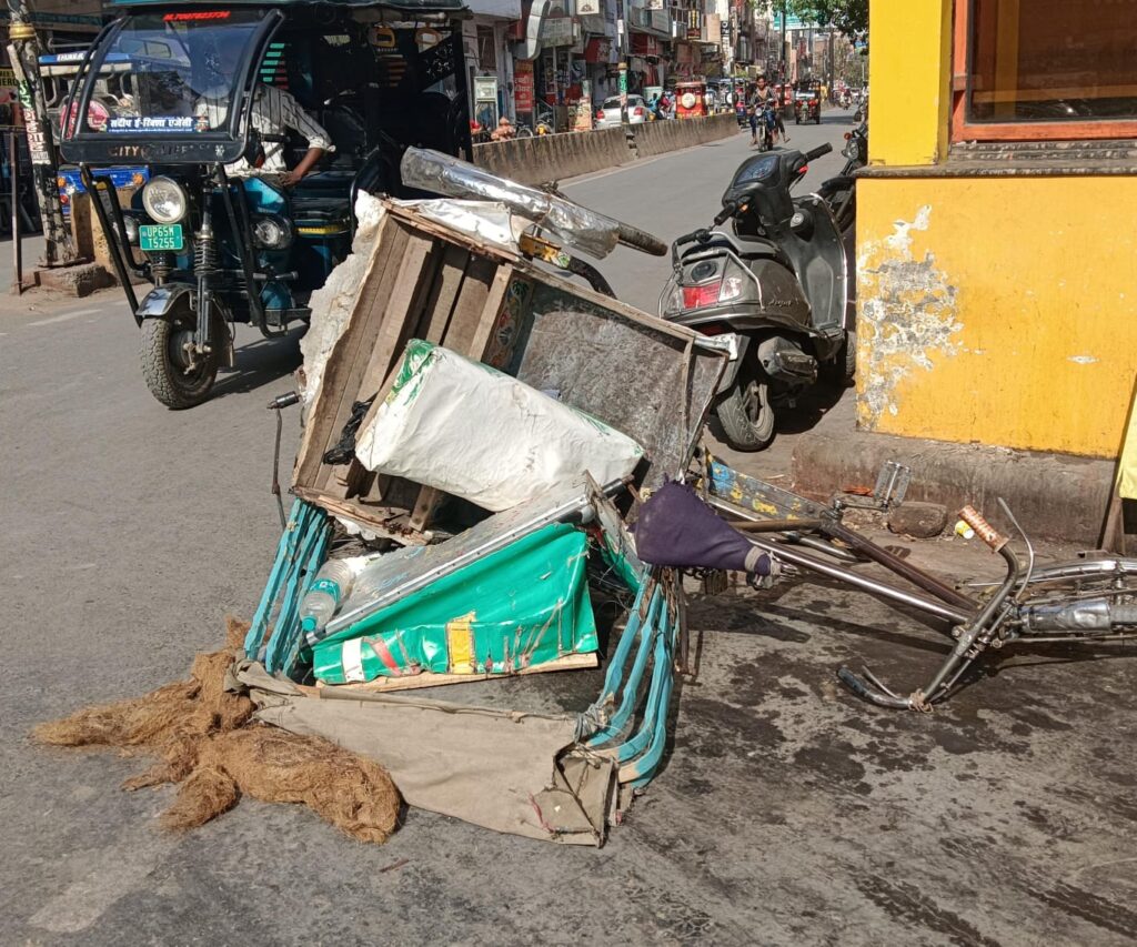 वाराणसी।लक्सा थाना क्षेत्र में शुक्रवार को दोपहर तेज रफ्तार में चला रहे कार चालक ने बाइक में धक्का मारते हुए रिक्शा में धक्का मार देने के कारण रिक्शा पर सवार सांस,बहु,पोटी व रिक्शा चालक गंभीर रूप से घायल हो गया। जिन्हें समीप के कोड़ियां अस्पताल में ले जाया गया जहां प्राथमिक चिकित्सा के बाद सभी को बीएचयू स्थित ट्रामा सेंटर रेफर कर दिया गया। वहीं क्षेत्रीय नागरिकों ने कार चालक को पकड़ कर लक्सा पुलिस को सौंप दिया है।