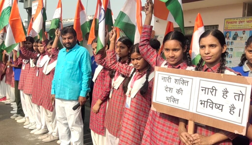 नारी शक्ति की गूंज: 1000 से अधिक छात्राओं और खिलाड़ियों ने बनाई मानव श्रृंखला