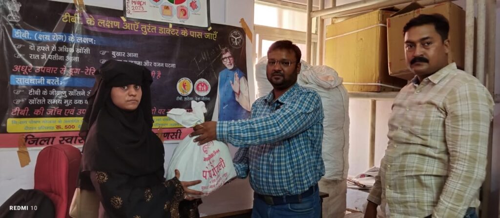 यहाँ वितरित हुईं पोषण पोटली – जिला पीपीएम समन्वयक नमन गुप्ता ने बताया कि टीबी यूनिट क्रमशः शहरी सीएचसी दुर्गाकुंड, काशी विद्यापीठ, शिवपुर, एसवीएम राजकीय चिकित्सालय एवं एसएसपीजी मंडलीय चिकित्सालय पर टीबी रोगियों को 185 पोषण पोटली वितरित की गईं। पोषण पोटली मुस्कान स्वयं सहायता समूह के अलावा निक्षय मित्र डॉ स्वर्णलता सिंह, गंगा सेवा सदन हॉस्पिटल, शुक्ला हॉस्पिटल, लाइफ केयर हॉस्पिटल डाफ़ी, उपकार हॉस्पिटल, जार्जियन हॉस्पिटल और होलीसिटी हॉस्पिटल के द्वारा प्रदान की गई।