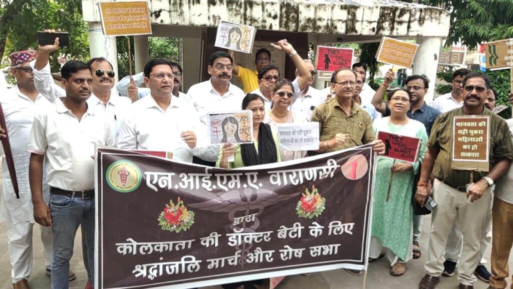 वाराणसी नेशनल इंटीग्रेटेड मेडिकल एसोसियेशन नीमा वाराणसी द्वारा डा सुनील मिश्रा के नेतृत्व में तथा डा आर के यादव,डा.बी एन रॉकी एवं डा विनय पाण्डेय के संयोजन में 21अगस्त बुधवार को डा.मोमिता देवनाथ की निर्मम हत्या के विरोध में बहुत ही आक्रोश भरा एक प्रोटेस्ट मार्च संपूर्णानंद संस्कृत विश्वविद्यालय से आज़ाद पार्क तक निकाला गया | सदस्यों ने बहुत ही जोरदार तरीके से पश्चिम बंगाल की मुख्यमंत्री ममता बनर्जी की बर्खास्तगी के साथ ही वहां राष्ट्रपति शासन लगाने की मांग किया ममता बनर्जी द्वारा डा.मोमिता के हत्यारों को बचाने तथा साक्ष्यों को मिटाने में जुटी पश्चिम पुलिस के कृत्यों की घोर भर्त्सना की गई तथा नारी सुरक्षा एवं सम्मान की रक्षा का संकल्प लिया।