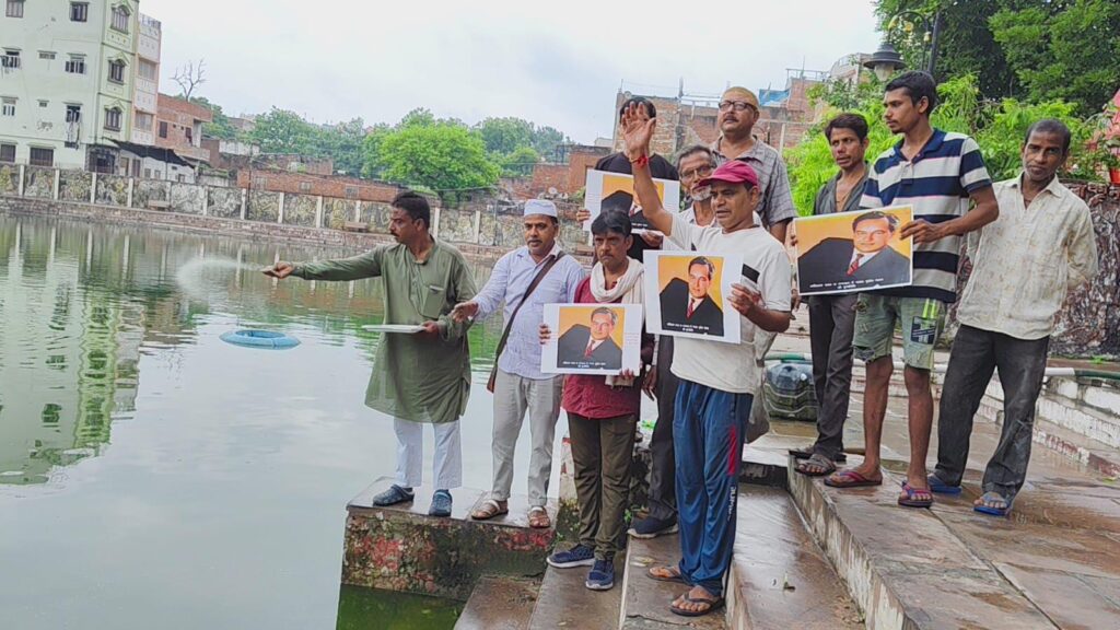 वाराणसी: डर्बीशायर क्लब के तत्वावधान में हर साल की तरह इस साल भी फिल्मी दुनिया के महान गायक मुकेश साहब की 48 वीं पुण्यतिथि क्लब अध्यक्ष शकील अहमद जादूगर के नेतृत्व में पितरकुण्डा के कुण्ड पर मछलियों को चारा खिलाते हुए मुकेश साहब को श्रद्धांजलि अर्पित की गयी।