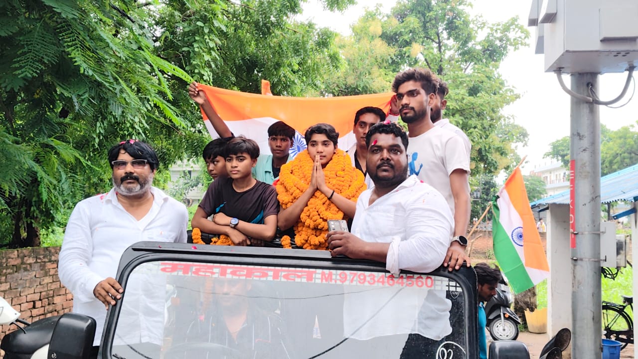मार्ग में कई स्थानों पर लोगों ने पुष्प वर्षा कर कोमल का स्वागत किया।
