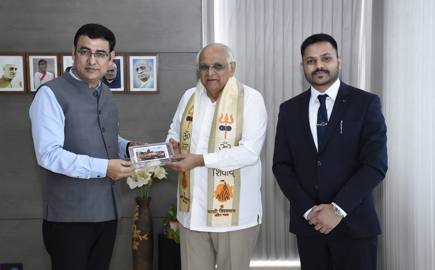 उत्तर प्रदेश के वाराणसी से स्थानांतरित होकर उत्तरी गुजरात परिक्षेत्र, अहमदाबाद के पोस्टमास्टर जनरल बने कृष्ण कुमार यादव ने गुजरात के मुख्यमंत्री भूपेन्द्रभाई पटेल से गांधीनगर स्थित उनके कार्यालय में शिष्टाचार मुलाकात की। इस दौरान डाक विभाग द्वारा विभिन्न सेवाओं में किये जा रहे नवाचार के बारे में उन्हें जानकारी दी। मुलाकात के दौरान उन्होंने मुख्यमंत्री को अपनी पुस्तकें भी भेंट की। श्री काशी विश्वनाथ मंदिर प्रसाद के साथ भारत सरकार के राज चिन्ह के साथ जारी ‘जय हिंद’ डाक टिकट और ‘रामायण : राम दरबार’ पर जारी डाक टिकट की खूबसूरत प्रतिकृति भी भेंट की, जिसे प्राप्त कर मुख्यमंत्री काफी अभिभूत हुए और अपनी शुभकामनायें दीं।