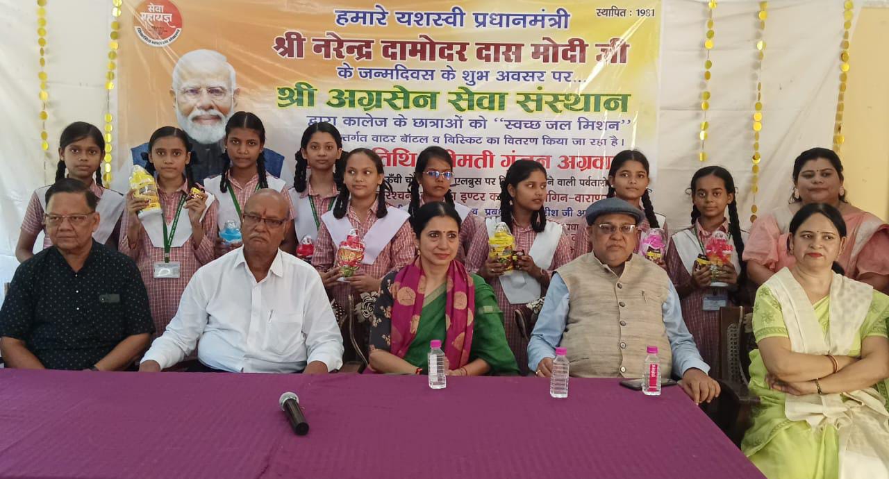 वाराणसी: देश के यशस्वी प्रधानमंत्री नरेंद्र दामोदरदास मोदी के जन्मदिवस के उपलक्ष में श्री अग्रसेन सेवा संस्थान वाराणसी द्वारा बुधवार को मैदागिन स्थित श्री हरिश्चंद्र बालिका इंटर कॉलेज परिसर में स्वच्छ जल मिशन के तहत कार्यक्रम का आयोजन किया गया और छात्राओं को स्वच्छ जल के उपयोग के लिए वाटर बाटल प्रदान किया गया।