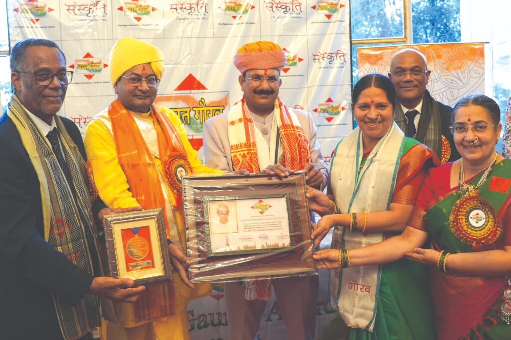 पैरिस (फ्रान्स) - अखिल मानवजाति के कल्याण के लिए निरंतर प्रयासरत, साधना से संबंधित दिशादर्शन कर संपूर्ण संसार के साधकों का जीवन आनंदमय बनानेवाले, विज्ञानयुग में सरल भाषा में अध्यात्म का प्रसार कर समाज का दिशादर्शन करनेवाले सनातन संस्था के संस्थापक सच्चिदानंद परब्रह्म डॉ. जयंत आठवलेजी को  5 जून 2024 को फ्रान्स के सीनेट में (संसद में) ‘भारत गौरव पुरस्कार’ से सम्मानित किया गया । फ्रेंच संसद के उपाध्यक्ष डॉमिनिक थिओफिल, मेहंदीपुर बालाजी ट्रस्ट के श्री नरेश पुरी महाराज, ‘संस्कृति युवा संस्था’ के अध्यक्ष पं. सुरेश मिश्रा एवं फ्रेंच संसद सदस्य फ्रेडरिक बुवेल के करकमलों से भारतीय संस्कृति एवं सभ्यता के जागतिक प्रसार के लिए किए गए अद्वितीय योगदान के लिए उन्हें यह पुरस्कार दिया गया । सच्चिदानंद परब्रह्म डॉ. जयंत आठवलेजी की ओर से उनकी आध्यात्मिक उत्तराधिकारिणी श्रीसत्शक्ति (श्रीमती) बिंदा सिंगबाळ एवं श्रीचित्‌शक्ति अंजली गाडगीळजी ने यह पुरस्कार स्वीकार किया । ‘संस्कृति युवा संस्था’ ने इस पुरस्कार के लिए सच्चिदानंद परब्रह्म डॉ. जयंत आठवलेजी का चयन किया था ।