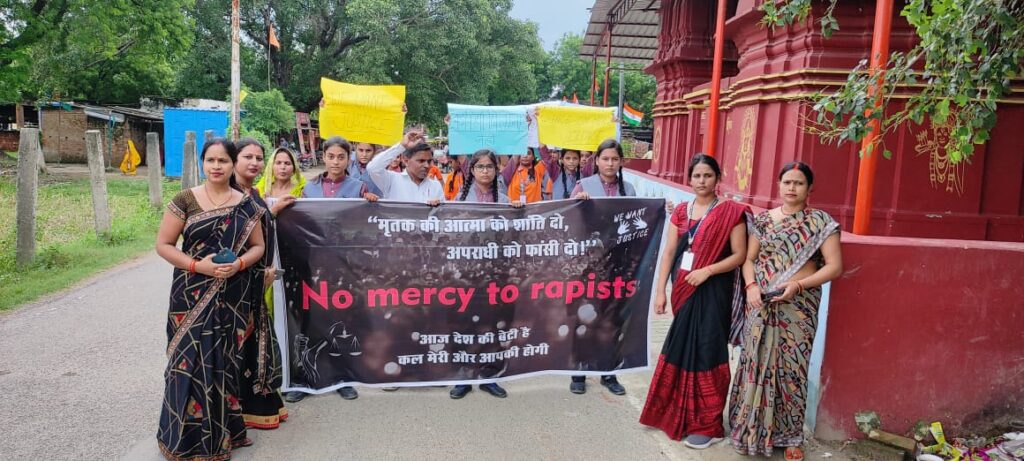 वाराणसी। कोलकाता में हुए ट्रेनी डॉ. से बलात्कार के विरोध में शनिवार को डीआरएस पब्लिक स्कूल ( खेवली) के सैकड़ो छात्र छात्राओं ने रामेश्वर से पांचोशिवाला तक कैंडल मार्च निकाल कर, विरोध प्रदर्शन किया और हत्यारों को फांसी पर चढ़ाने की मांग की। इस दौरान स्कूल के 8 वीं का छात्रा कृति सिंह ने कहा माँ बाप बच्चे को पढ़ाई करा कर डॉक्टर बनाने आखिर कैसे भेजेंगे जब ऐसे कुकर्मी सड़कों पर घूमेंगे। अन्य बच्चों ने कहा कि कोलकाता की घटना वहां के सरकार के लिए भी डूब मरने जैसा है। बंगाल की घटना मानवता पर कलंक है। शिक्षकों का कहना था कि बंगाल में ममता सरकार ऐसे राक्षसों को पकड़ने में तुरंत मदद करें, सीबीआई जांच में सच उजागर हो जाना चाहिए। बंगाल में शासन व्यवस्था की चूलें हिल चुकी हैं । आए दिन वहां होने वाले अत्याचार से पूरे दुनिया में भारत का नाम खराब होता है। इस मामले में ढिलाई नहीं होनी चाहिए। विरोध प्रदर्शन में प्रधनाचार्य नवीन सिंह, प्रवीण पाण्डेय, मनीष पटेल, सुगम सिंह, संजय कुमार, सारिका सिंह, वीणा सिंह, रश्मि पाण्डेय, गीता प्रजापति मधु सिंह आदि लोग मौजुद थे।