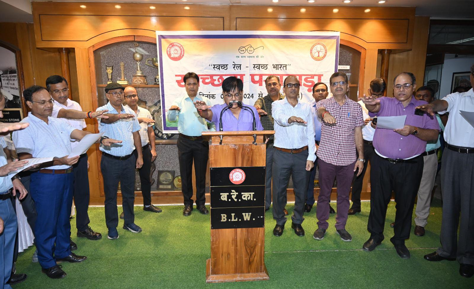वाराणसी: बनारस रेल इंजन कारखाना बरेका में स्वच्छता पखवाड़ा के अंतर्गत आज महाप्रबंधक सुशील कुमार श्रीवास्तव ने बरेका प्रशासन भवन के स्वागती हॉल में अधिकारियों और कर्मचारियों को स्वच्छता की शपथ दिलाई। इस अवसर पर उपस्थित अधिकारियों और कर्मचारियों ने स्वच्छता के प्रति जागरूक रहते हुए अपने कर्तव्यों का निष्ठापूर्वक पालन करने का संकल्प लिया। शपथ ग्रहण कार्यक्रम में बड़ी संख्या में महिला रेलकर्मियों ने भी उत्साहपूर्वक भाग लिया।