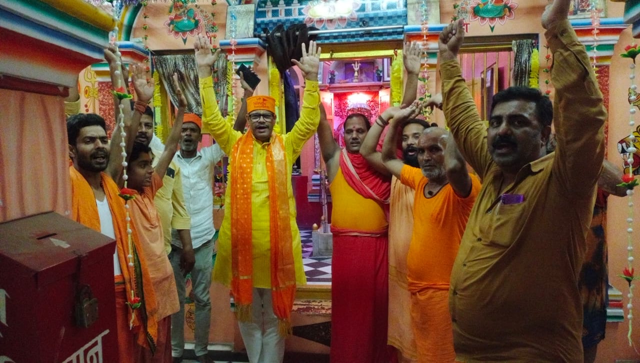 वाराणसी: बहराइच मे माँ दुर्गा के विषर्जन मे जा रहे राम गोपाल मिश्रा की निर्मम हत्या को लेकर पूरे देश मे रोष का माहौल था जिसे लेकर हिन्दू इकोसिस्टम वाराणसी द्वारा श्रद्धांजलि सभा मे योगी जी से त्वरित कारवाही का निवेदन किया गया था आज उन अपराधियों को मुख्यमंत्री योगी आदित्यनाथ की पुलिस द्वारा सही मार्ग दिखाया गया जिसे लेकर हिन्दू इकोसिस्टम के प्रदेश अध्यक्ष राकेश पाण्डेय ने श्री सिद्ध पीठ यमुनेश्वर ने महाआरती और प्रसाद वितरण कराकर खुशी मनाई और कहा आज हम सनातनियों को योगी आदित्यनाथ जैसे मुख्यमंत्री की ही जरुरत है उनके रहते हर सनातनी को तुरंत न्याय मिलता है|