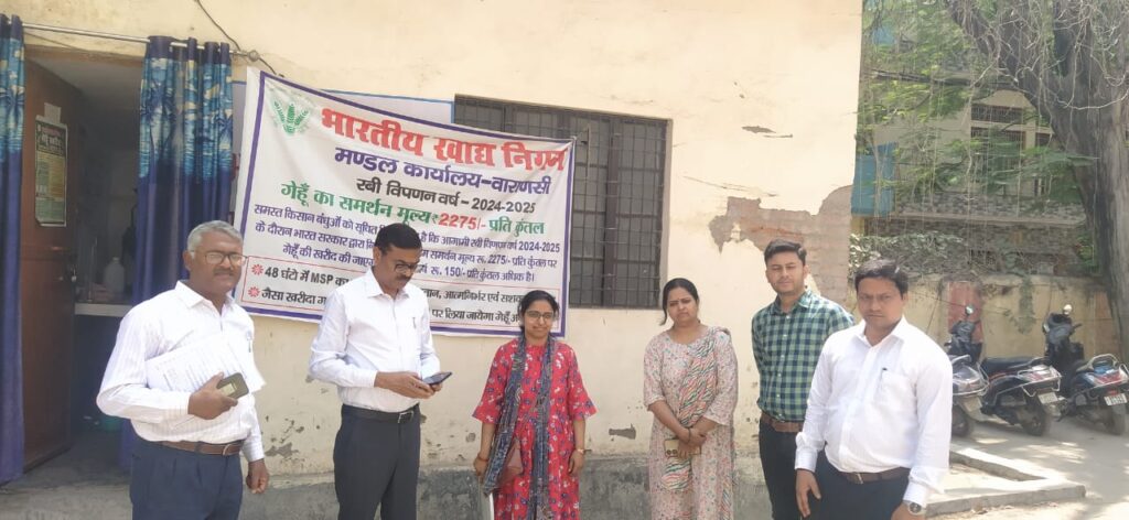का संचरण न हो सके। जिला प्रशासन के सहयोग के टीम गठित कराकर सतत् निगरानी करायी जाये।मण्डल में कुल 13947 किसानों द्वारा पंजीकरण किया गया है सभी को निर्देश दिये गये कि किसानों के पंजीकरण का सत्यापन तत्परता से कराया जाये गेहूँ खरीद में किसानों को किसी प्रकार की कोई समस्या न हो। नोडल अधिकारी द्वारा जनपद वाराणसी में गेहूँ के भण्डारण हेतु भारतीय खाद्य निगम के पहड़िया डिपो का निरीक्षण किया गया व भण्डारण हेतु दिशा निर्देश दिये गये। विपणन शाखा के गेहूं क्रय केन्द्र चिरईगॉव, पी०सी०एफ० का जाल्हूपुर एवं भा०खा०नि० के पहड़िया मण्डी का निरीक्षण किया गया। कृषक नागेशवर दयाल ग्राम रामचन्दीपुर, सोहन यादव ग्राम मिश्रीरपुर, हंसराज ग्राम प्रेमनगर गौरा आदि किसानो से वार्ता की गयी। उन्हें और सरकारी कय केन्द्र पर गेहॅू विक्रय हेतु अपील की गयी कृषको को बताया गया कि इस वर्ष न्यूनतम समर्थन मूल्य रू0 2275 प्रति कुन्तल के अतिरिक्त 20 रू० उतराई/छनाई के मिलेगें और किसानो के सुविधा हेतु मोबाईल कय केन्द्रों के माध्यम से भी गेहूँ की खरीद की जायेगी, किसानों को गेहूं की उपज का मूल्य उनके बैंक खाते में 48 घण्टे में कर दिया जायेगा। उन्होंने केन्द्र प्रभारियों को निर्देश दिये कि क्रय केन्द्र पर गेहूं की सफाई हेतु विनोइंग फैन, दो जाली का छलना, नमी मापक यंत्र एवं पावर डस्टर, कृषकों के बैठने हेतु छायादार स्थान, पीने हेतु पानी, पार्किग आदि की समुचित व्यवस्था निरन्तर बनी रहे और किसानों से व्यक्तिगत सम्पर्क करते हुये अधिक से अधिक गेहूं की खरीद करते हुये लक्ष्य की प्राप्ति कराना सुनिश्चित करें एवं कृषकों को किसी प्रकार की समस्या न हो।