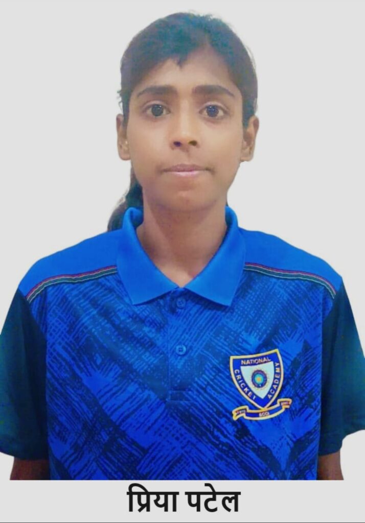Home » बी.सी.सी.आइ द्वारा आयोजित नेशनल क्रिकेट एकेडमी U-15 कैंप में बरेका क्रिकेट एकेडमी की प्रिया पटेल का चयन