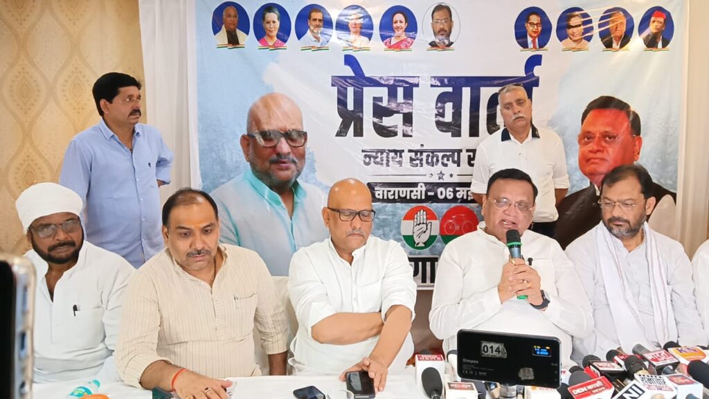 आज के पत्रकार वार्ता में कांग्रेस प्रदेश अध्यक्ष व वाराणसी से इडिया गठबंधन के प्रत्याशी अजय राय, राष्ट्रीय सचिव राजेश तिवारी, प्रदेश कोषाध्यक्ष शिव पाण्डेय, प्रयाग जोन मीडिया कोआर्डिनेटर-प्रवक्ता संजीव सिंह, महानगर अध्यक्ष राघवेंद्र चौबे,जिलाध्यक्ष राजेश्वर सिंह पटेल,प्रदेश सचिव फसाहत हुसैन बाबू, पंकज सोनकर,चन्द्र प्रकाश,विकास कौण्डिल्य मौजूद रहे|