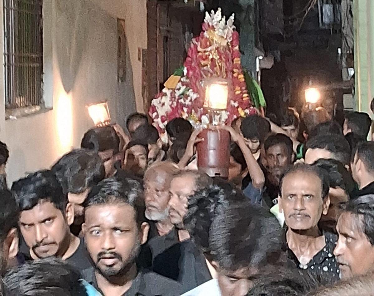 वाराणसी: चाहमाहमा स्थित ख्वाजा नब्बू साहब के इमामबाड़े से कदीम आठवीं मोहर्रम का तुर्बत व अलम का जुलूस अपनी पुरानी परंपराओं के अनुसार कार्यक्रम संयोजक सैयद मुनाज़िर हुसैन मंजू के ज़ेरे एहतमाम उठा। जुलूस उठने से पूर्व मजलिस को खिताब करते हुए अब्बास मूर्तज़ा शम्सी ने मौला अब्बास की शहादत बयान किया। जुलूस उठने पर लियाकत अली खां व उनके साथियों ने सवारी शुरू की जब हाथ कलम हो गए सक्काए हरम के और अर्शे बरी हिल गया गिरने से अलम के जुलूस चाहमामा होते हुए दालमंडी स्थित हकीम साहब के अज़ाख़ाने पर पहुँचा जहां से अंजुमन हैदरी चौक बनारस ने नौहाख्वानी शुरू की अब्बास क्या तराइ में सोते हो चैन से” जिसमें शराफत हुसैन लियाकत अली खां साहब ज़ैदी शफाअत हुसैन शोफी मज़ाहिर हुसैन राजा व शानू ने नौहाख्वानी की l