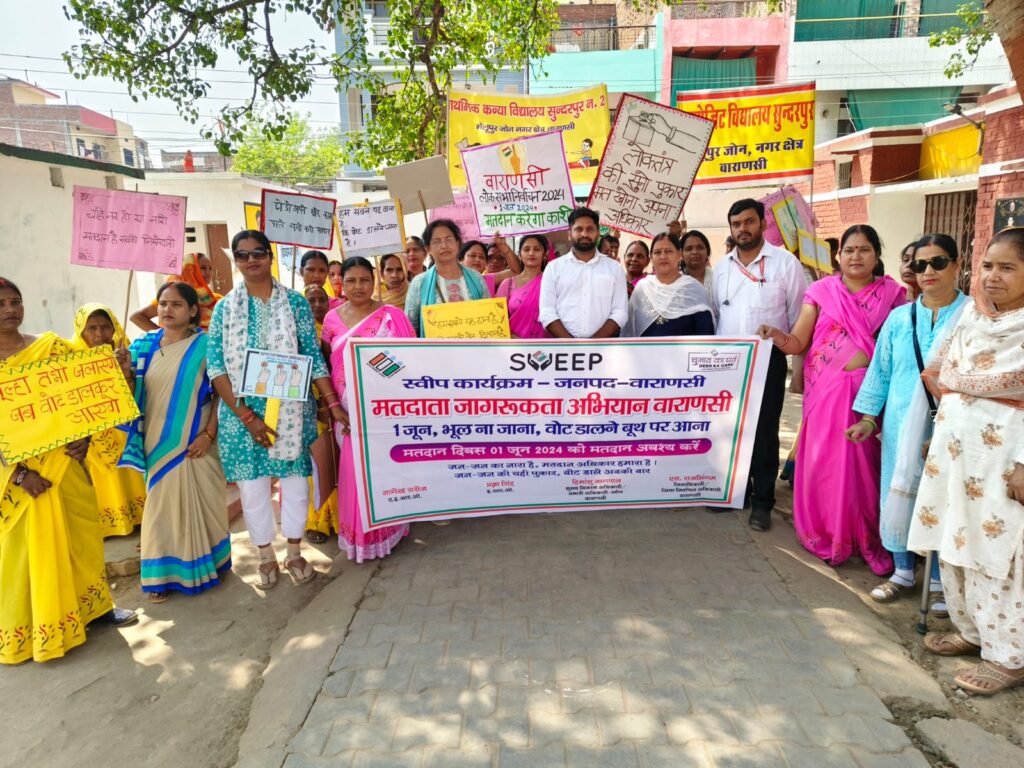 Varanasi: कैंटोमेंट विधानसभा क्षेत्र वाराणसी में नगर क्षेत्र के खण्ड शिक्षा अधिकारी व सहायक नोडल अधिकारी नागेन्द्र सरोज, रमा पाण्डेय(खण्ड शिक्षा अधिकारी),रेनू पाण्डेय(आंगनवाड़ी सुपरवाइजर) ,वीरेन्द्र पाण्डेय(नगर निगम सुपरवाइजर), साथ शिक्षक एवं कर्मचारी ,आंगनवाड़ी कर तथा कंपोजिट विद्यालय सुंदरपुर व प्राथमिक विद्यालय कन्या सुंदरपुर के शिक्षक छात्रों के साथ मतदाता जागरूकता शपथ दिला कर रैली निकालकर मतदाताओं को जागरूक किया गया । विद्यालय से सुंदरपुर सब्जी मण्डी चौराहा से मलिन बस्ती से होते हुए विद्यालय पर आकर समाप्त हुआ इस दौरान बच्चों ने “बड़े बूढ़े दादी अम्मा सुन ध्यान से।