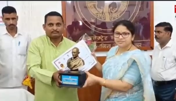 मिर्ज़ापुर में गांधी जयंती पर टीबी फ्री गांव बनाने के उपलक्ष में उन्हें प्रशस्ति पत्र एवं गांधी जी की प्रतिमा भेंट करते हुए सम्मानित किया गया