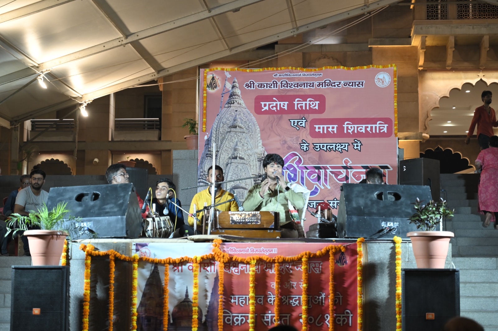 Varanasi:मोहिनी एकादशी के उपलक्ष्य में श्री काशी विश्वनाथ मंदिर न्यास द्वारा सांस्कृतिक कार्यक्रम ‘शिवार्चनम’ की श्रृंखला में कॉरिडोर प्रांगण में स्थित शंकराचार्य चौक में भजन संगीत संध्या का आयोजन किया गया I भव्य शिवार्चनम में उपस्थित अनेक गणमान्य विशिष्ट जन के साथ ही बड़ी संख्या में श्री काशी विश्वनाथ महादेव के श्रद्धालुओं ने भाव विभोर हो भजन संध्या का आनंद उठाया। भजन संध्या कार्यक्रम की मधुर बेला में एक प्रस्तुति गायक सनी मिश्र (भजन रत्न), दूसरी प्रस्तुति कलाकार – गायक सूर्यांश शर्मा, पंडित मंगला प्रसाद मिश्र, शिवांश मिश्र, अवधेश कुमार, रोशन मिश्र, अनन्या शर्मा के समूह की रही। श्री काशी विश्वनाथ मंदिर न्यास निरंतर ऐसे ही भव्य, दिव्य एवं पवित्र सनातन आयोजन धाम परिसर में आयोजित कर सनातन परंपरा को अक्षुण्ण उल्लास से परिपूर्ण करने को प्रतिबद्ध है। न्यास समस्त सनातन मतावलंबी सहभागियों को इन नवाचारों में सम्मिलित होने के लिए सादर आमंत्रित करता है।