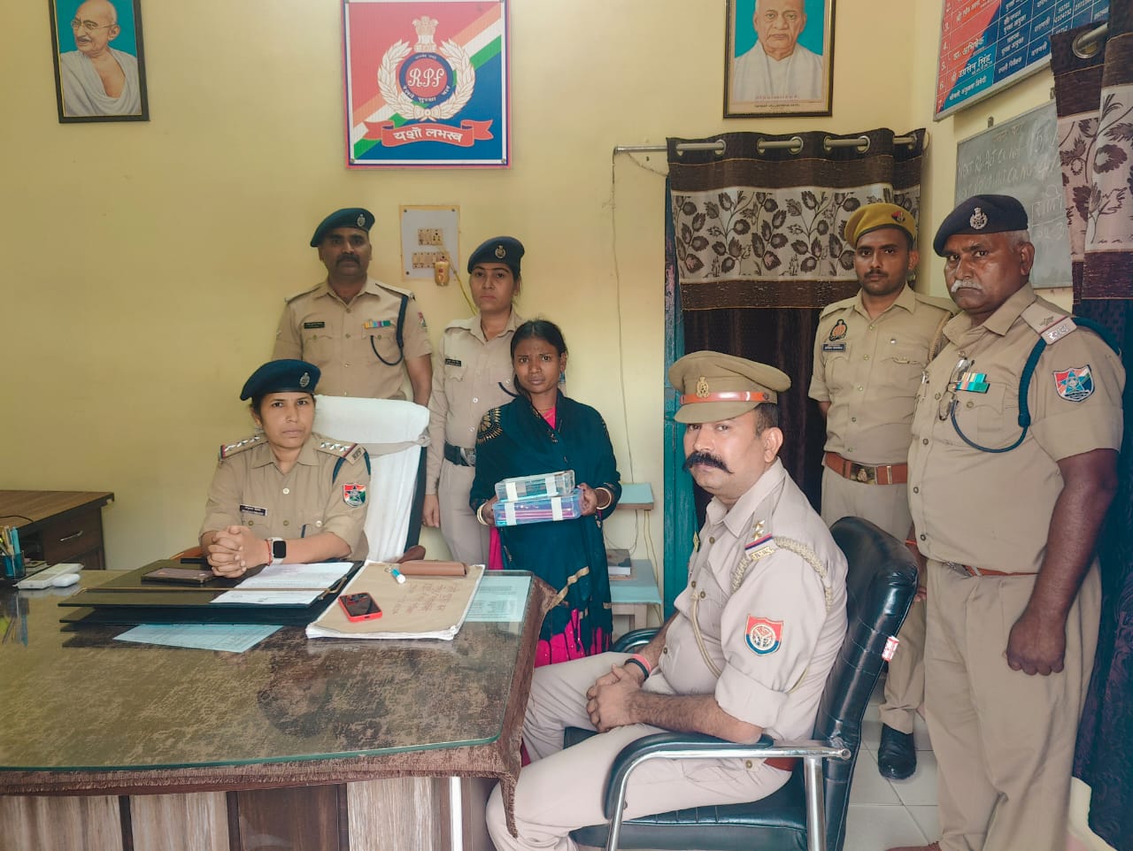 वाराणसी: निरीक्षक अंजू लता द्विवेदी साथ कांस्टेबल रमेश कुमार यादव व महिला कांस्टेबल कुमारी अर्चना सिंह सभी रेलवे सुरक्षा बल पोस्ट वाराणसी सिटी अपराधी गतिविधि निगरानी में सारनाथ रेलवे स्टेशन पर मशगूल थे कि तभी चौकी प्रभारी जीआरपी वाराणसी सिटी उप निरीक्षक विवेकानंद यादव साथ स्टाफ साथ स्टाफ अपराधिक निगरानी में सारनाथ रेलवे स्टेशन पर मशगूल मिले साथ मिलकर TOPB के संबंध में बातचीत हो ही रही थी कि तभी मुखबिर खास द्वारा प्राप्त सूचना कि एक महिला संदिग्ध अवस्था में तीन-चार दिन से रेलवे स्टेशन सारनाथ पर घूम रही है जो अभी स्टेशन के पूर्वी छोर की तरफ है पकड़ कर पूछताछ किया गया व जामा तलाशी ली गई तो उसके अपना नाम सेमरी उर्फ रंगीला देवी उर्फ पूजा पासी पत्नी सोल्जर खरवार निवासी बराठी, विदेशी टोला, अंगोठी गोला जिला रोहतक बिहार उम्र करीब 35 वर्ष एवं उसके पास चोरित एक अदद लेडिस पर्स लाल रंग का रुपया 1305 नगद एक आधार कार्ड, पैन कार्ड , एक बिछिया, पायल का दो छोटा-छोटा टुकड़ा व दो पासपोर्ट साइज फोटो संबंधित 11/24 अंडर सेक्शन 379 आईपीसी दिनांक 18.04.24 व एक रियलमी मोबाइल संबंधित 56/23 अंडर सेक्शन 379 आईपीसी थाना जीआरपी मऊ बरामद हुआमौके पर विधिक कार्यवाही कर बाद अग्रिम कार्रवाई हेतु जीआरपी वाराणसी सिटी द्वारा ले जाया गया।