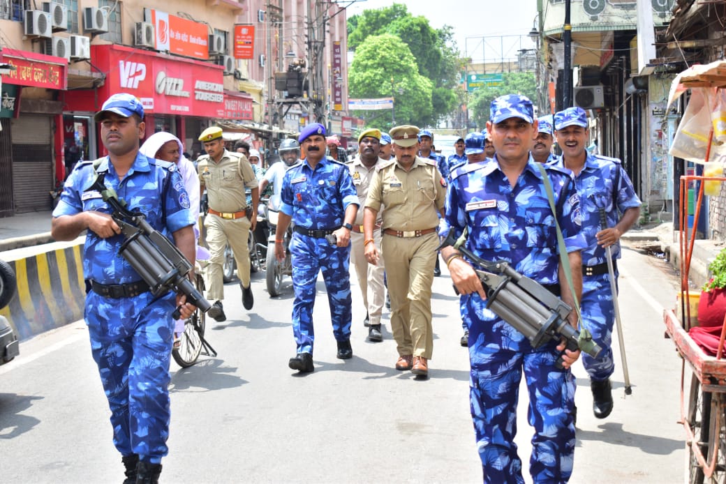 वाराणसी/-रैपिड एक्शन फोर्स के जवानों ने चेतगंज ,जैतपुर आदमपुर ,चौक एवं कोतवाली में पुलिस के साथ क्षेत्र की गलियों सड़को व बाजारों में पैदल गश्त किया।जिससे आवश्यकता पड़ने पर फोर्स के जवानों को मौके पर पहुंचने में दिक्कत न हो।रैपिड एक्शन फोर्स के जवानों के साथ पुलिस फोर्स को देख लोगों में खलबली मची रही।इस बीच पुलिस ने लोगों को जागरुक किया कि वह कोई ऐसा कार्य न करें।जिससे पुलिस को कार्यवाही करनी पड़े।इस बीच जवानों को थाना पुलिस ने क्षेत्रों के बारे में जानकारी देने के साथ ही रास्तों के बारे में भी बताया।इससे जरुरत पड़ने पर फोर्स को घटनास्थल पर पहुंचने में दिक्कत न हो,जल्द से जल्द फोर्स के पहुंचने पर उपद्रवियों को नियंत्रण में करने के साथ ही उनके खिलाफ कार्यवाही की जा सके। विनोद कुमार राव सहायक कमांडेंट के नेतृत्व में रैपिड एक्शन फोर्स के जवान पूरे क्षेत्र में पैदल गश्त करने के साथ ही गली मोहल्लों के बारे में जानकारी एकत्रित करेंगे।जिससे घटना होने पर उनको मौके पर पहुंचने में दिक्कत का सामना न करना पड़े।पैदल गश्त के दौरान मुख्य रूप से बिनोद कुमार राव सहायक कमांडेंट 91 आरएफ, निरीक्षक सुरेंद्र कुमार पटेल निरीक्षक अभिषेक कुमार निरीक्षक संदीप कुमार सिंह एवं पुलिस के अन्य अधिकारियों जवानों के साथ क्षेत्र में आगामी पर्व सावन के मद्देनजर लोगो मे अमन चैन शांति कायम रखने का एहसास दिलाने के लिए पैदल गश्त किये।