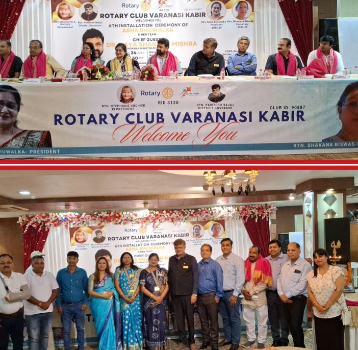 वाराणसी :- रोटरी क्लब वाराणसी कबीर का छठवां स्थापना स्थापना दिवस अंधरापुल रोडवेज स्थित होटल रीजेंसी में संपन्न हुआ |कार्यक्रम के मुख्य अतिथि उत्तर प्रदेश सरकार के आयुष’ खाद्य सुरक्षा एवं औषधि प्रशासन राज्य मंत्री स्वतंत्र प्रभार डॉक्टर दयाशंकर मिश्र दयालु ने दीप प्रज्जवलन कर कार्यक्रम का शुभारंभ किया | इस अवसर पर उन्होंने अपने उद्बोधन में कहा कि रोटरी समाज सेवा हेतु जानी जाती है और समाज के विभिन्न वर्गों को जोड़ने का प्रयास करती है इस अवसर पर उन्होंने रोटरी द्वारा किए गए बहुत से कार्यों की प्रशंसा भी की और कहा कि रोटरी की शाखाएं दुनिया के 200 से ज्यादा देशों में कार्य कर रही हैं और इनका कार्य निरंतर जारी है जो की बहुत ही सराहनीय है बहुत ही सराहनीय है रोटरी क्लब कबीर की नव निर्वाचित अध्यक्ष रोटेरियन आभा भुवालका , सचिव भावना विश्वास , कोषाध्यक्ष सौरभ मिश्रा को सपथ दिलाई गई |