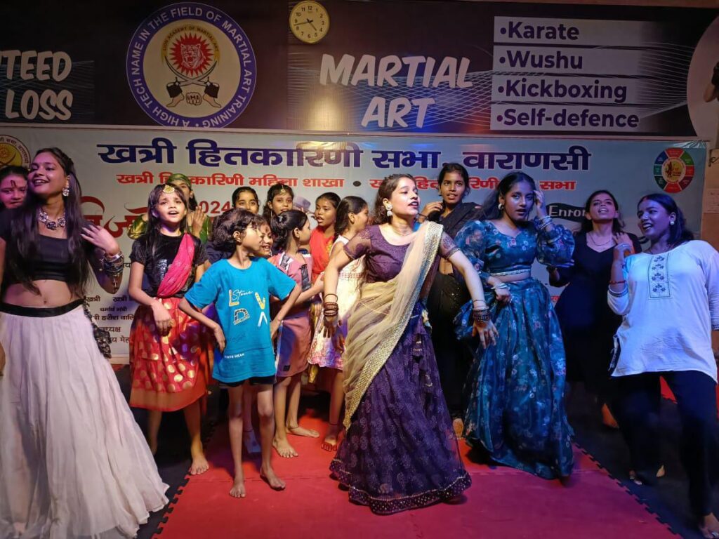 वाराणसी: खत्री हितकारिणी सभा वाराणसी एवं खत्री हितकारिणी महिला शाखा एवं खत्री हितकारिणी युवा सभा के संयुक्त तत्वाधान में विजयोत्सव 2024 के अंतर्गत 6 अक्टूबर रविवार लामा फाइट क्लब में बूगी वूगी बॉलीवुड डांस प्रतियोगिता का आयोजन किया गया जिसमें 6 वर्ष से लेकर 40 वर्ष तक के 90 प्रतिभागियों ने अपने कौशल एवं प्रतिभा का का परिचय दिया। प्रतियोगिता का शुभारंभ दीप प्रज्वलन प्रभु श्री राम के छायाचित्र पर माल्यार्पण एवं जातिगान से हुआ। इस अवसर पर कार्यक्रम के मुख्य अतिथि शहर के सुप्रसिद्ध डॉ अश्विनी टंडन ने अपने विचार व्यक्त करते हुए कहा कि इस तरह की प्रतियोगिता से बच्चों महिलाओं एवं युवाओं की प्रतिभाओं को आगे आने का मंच मिलता है। इस तरह के कार्यक्रमों के आयोजन से युवाओं एवं प्रतिभाशाली कलाकारों में आत्मविश्वास बढ़ता है। कार्यक्रम की विशिष्ट अतिथि जाने माने उद्योगपति मनीष तलवार एवं हनीश कपूर ने सभी प्रतिभागियों का उत्साहवर्धन करते हुए कहा कि खत्री समाज इस तरह के कलाकारों के उत्थान के लिए हमेशा इस तरह के कार्यक्रम करता रहता है जिससे प्रतिभाओं को आगे आगे का मौका मिल सके।