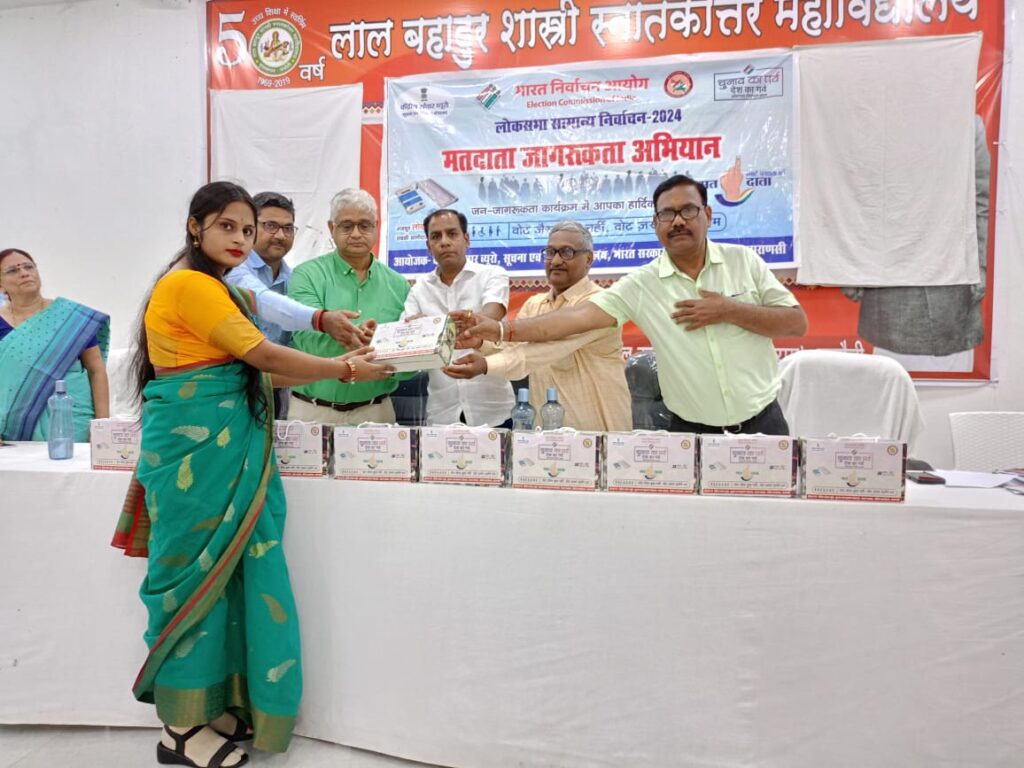 डॉ. लालजी ने बताया कि मतदाता पहचान के विभिन्न विकल्प आयोग द्वारा दिए गये हैं जिसमें आधार, पैन, ड्राइविंग लाइसेंस, फोटो युक्त पास बुक, मनरेगा जाब कार्ड आदि हैं सुव्यवस्थित मतदाता शिक्षा एवं निर्वाचन सहभागिता (स्वीप ) कार्यक्रम में समूह चर्चा, संवाद, गोष्ठी प्रश्नोत्तरी प्रतियोगिता हुई और मतदाता शपथ दिलायी गयी तथा हस्ताक्षर अभियान के तहत बड़ी संख्या में लोगों ने हस्ताक्षर किया l प्रश्नोत्तरी प्रतियोगिता में पूछे गये सवाल का सही जबाब बताने वाले दस विजेता क्रमशः हंशिता पाठक, अंजलि यादव, सुनैना, धर्मेंद्र पटेल, अंचल गुप्ता, संतोष यादव,, अंजलि तिवारी, स्वाति और अनुपमा जायसवाल रहीं जिन्हे केंद्रीय संचार ब्यूरो की तरफ से पुरस्कार प्रदान किया गया l सीबीसी के कलाकार भैया लाल एवं पार्टी ने संगीत के माध्यम से मतदान की अपील की l वाराणसी जनपद क्षेत्र में आने वाले चंदौली लोक सभा क्षेत्र ने जागरूकता वैन प्रचार प्रसार किया गया l