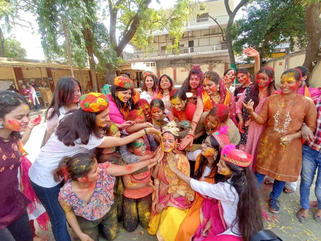 वसन्त कन्या महविद्यालय के संगीत विभाग की ओर से वसंतोत्सव ‘चलो ब्रज देखन होरी’ कार्यक्रम का भव्य आयोजन किया गया। कार्यक्रम का शुभारंभ उत्सव नायक श्रीकृष्ण राधा के चरणों में गुलाल समर्पित कर किया गया तत्पश्चात महीयसि डाॅ. एनी बेसेण्ट को गुलाल एवं पुष्प अर्पित कर भावांजलि दी गई। कार्यक्रम में स्वागत उद्बोधन करते हुए महाविद्यालय की प्राचार्या प्रो. रचना श्रीवास्त ने कहा छात्राओं को भारतीय सभ्यता एवं संस्कृति से जोड़ने के लिए ऐसी परम्पराओं का सप्रयोग प्रस्तुतिकरण अत्यन्त आवश्यक है। विलुप्त होती सामाजिक संरचनाओं को भी ऐसे आयोजन से संरक्षण मिलता है। संगीत विभाग का ऐसा आयोजन कला और विषय दोनों ही रूप में ‘शिक्षा ही सेवा है’ महाविद्यालय के इस बीज वाक्य को पूर्ण आकार देता है। कार्यक्रम का उद्देश्य प्रस्तुत करते हुए सांगीतिक प्रस्तुतियों की निर्देशक प्रो. सीमा वर्मा द्वारा सांगीतिक रचनाओं में ब्रज साहित्य का विशेष महत्व बताते हुए लोकधारा से शास्त्रीयधारा तक की विभिन्न शैलियों में कृष्ण के विविध लीला रूप रचे बसे हैं उनका सप्रयोग उदाहरण प्रस्तुत किया। वसंतपंचमी से डोलोत्सव तक विविध रागों में, अप्रचलित तालों में, होरी के पद भगवान शिव, राम और कृष्ण के प्रति केवल अपने प्रेम भाव ही समर्पित नहीं करते अपितु संगीत की विविध एवं शैलियों को पोषित एवं संरक्षित कर रहे हैं इस ओर ध्यान आकृष्ट कराया। कार्यक्रम में धमार, ख्याल, रागमाला, चतुरंग, दादरा, रसिया व चलति दीपचंदी एवं कहरवा में विभिन्न बंदिशें प्रस्तुत की गईं। होरी-होरी-होरी खेलत नन्दलाल, खोये गयो बाजुबंद रसिया होरी में क्लिष्ट बंदिशें आकर्षण का केन्द्र रहीं। गायन में कुमारी श्रेया पाण्डेय, स्वास्ति मिश्रा, आरती कुमारी, वैदेही निमगाँवकर, वैष्णवी शुक्ला एवं सौम्या मौर्या नें सुमधुर प्रतिभागिता की। संवादिनी पर प्रो. सीमा वर्मा एवं तबले, पखावज एवं ढप पर सौम्यकांति मुखर्जी एवं डाॅ. अमित कुमार ईश्वर नें अद्भुत सहयोग प्रदान किया। जया राय के निर्देशन में महाविद्यालय में कथक प्रशिक्षण ले रहीं छात्राओं नें मनमोहक झांकी प्रस्तुत कर बिरज के साथ काशी की होरी को चित्रित किया।