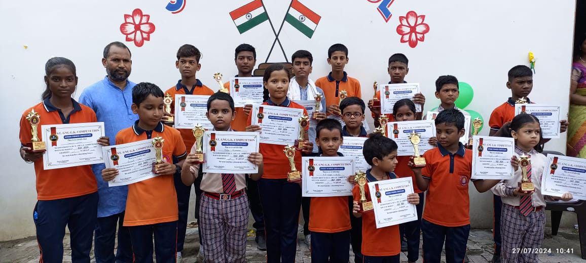वाराणसी: सेंट जी एन जी स्कूल सलारपुर वाराणसी में विगत 30 जुलाई 2024 को सामान्य ज्ञान प्रतियोगिता का आयोजन किया गया था। जिसमें ढाई सौ बच्चों ने भाग लिया। विविध श्रेणियों में कुल 49 बच्चों ने विजेता रहे। 8 बच्चों ने 100 प्रतिशत 40 में 40 अंक प्राप्त किया। प्रथम द्वितीय एवं तृतीय स्थान प्राप्त करने वाले को संस्था के प्रबंधक गुड्डू चौरसिया ने सर्टिफिकेट एवं ट्रॉफी प्रदान किया। सामान्य ज्ञान प्रतियोगिता की संयोजिका श्रीमती रीता चौरसिया सचिव रही।