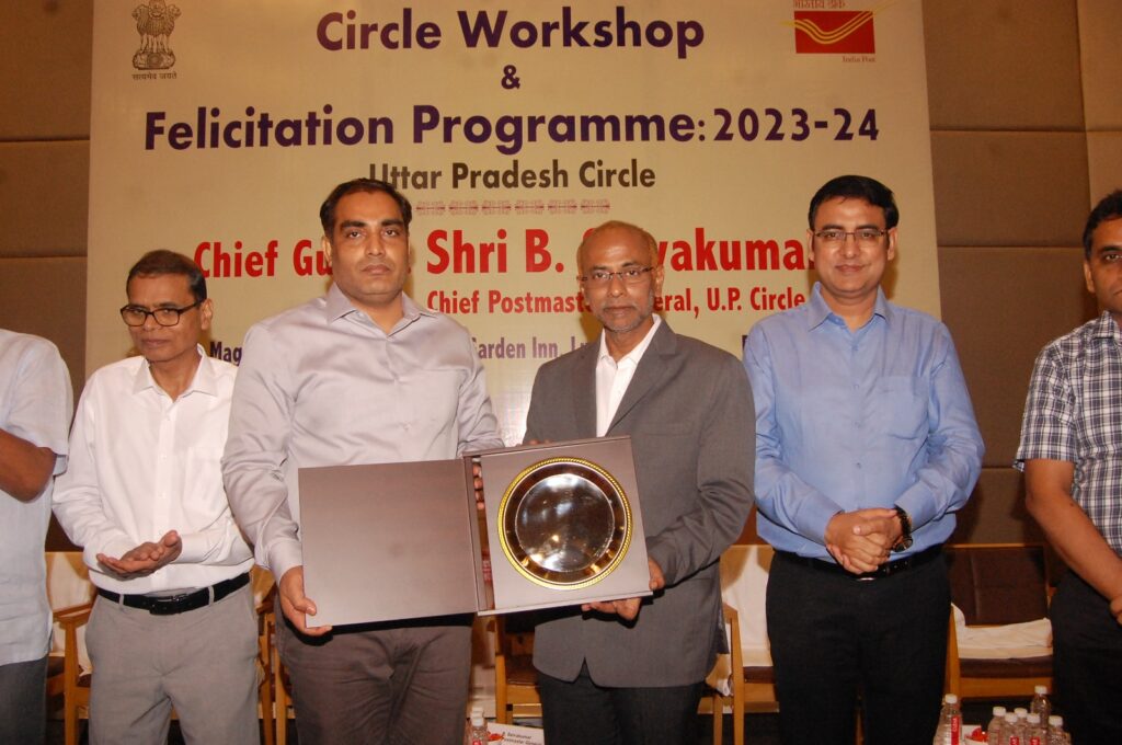 चीफ पोस्टमास्टर जनरल बा. सेल्वकुमार ने वित्तीय वर्ष 2023-24 में पूरे उत्तर प्रदेश में बचत खाता राजस्व एवं सुकन्या समृद्धि खाता में प्रथम स्थान हेतु वाराणसी पश्चिम मण्डल के अधीक्षक डाकघर विनय कुमार को सर्किल एक्सीलेंस अवार्ड समारोह में सम्मानित किया। वहीं, पूरे उत्तर प्रदेश में आधार राजस्व में प्रथम स्थान हेतु जौनपुर मण्डल के अधीक्षक डाकघर परमानंद कुमार एवं डाक वितरण में द्वितीय स्थान प्राप्त करने हेतु बलिया मण्डल के अधीक्षक डाकघर हेमंत कुमार को सम्मानित किया गया।