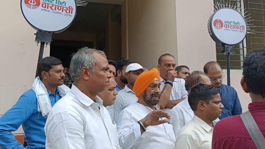 वाराणसी व्यापार मंडल के अध्यक्ष अजीत सिंह बग्गा मैदागिन के टाउनहाल मे बने गोमटी दुकानदारों को दिये जाने वाले दुकानों और जगह का निरीक्षण करने अपने पदाधिकारी जनों के साथ पहुंचे