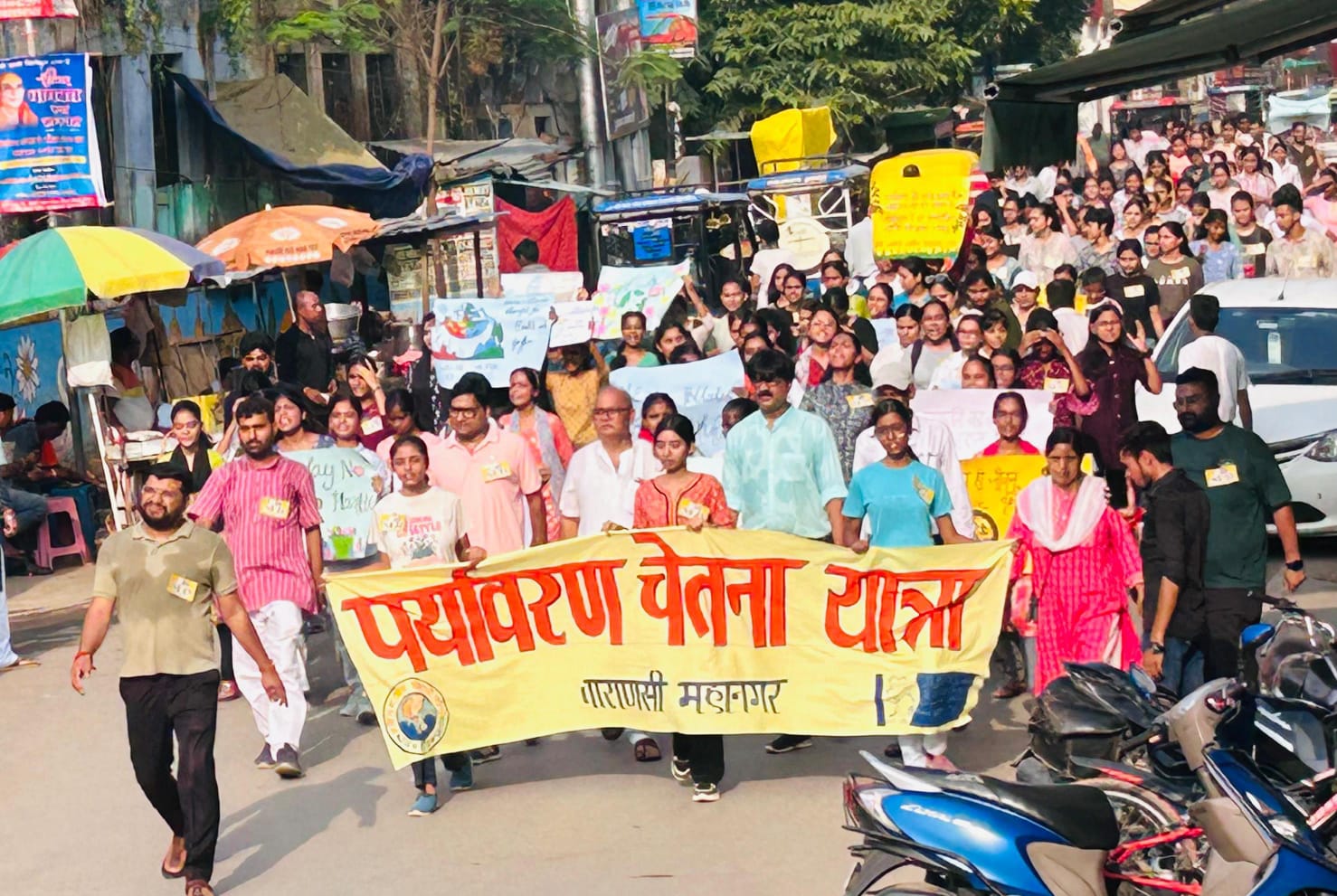 विकासार्थ विद्यार्थी द्वारा बीएचयू के सिंह द्वार से अस्सी घाट तक निकाली गई पर्यावरण चेतना यात्रा