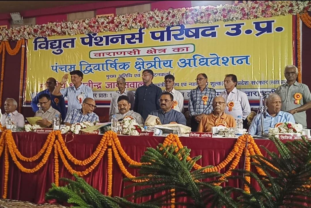 वाराणसी: विद्युत पेंशनर्स परिषद उ०प्र० वाराणासी क्षेत्र का चतुर्थ अधिवेशन आज पूरी भव्यता के साथ स्थानीय सगुन लॉन महमूरगज वाराणसी में सम्पन्न हुआ। दो सत्रों में चले महाधिवेशन के खुले सत्र का उद्घाटन वाराणसी चन्दौली गाजीपुर जौनपुर से आये बड़ी संख्या में पेंशनरों पारिवारिक पेंशनरों वरिष्ठ पदाधिकारियों एवं विभिन्न संगठनों के प्रतिनिधियों की भारी संख्या में उपस्थिति के बीच पूर्वाह्न 11.00 बजे मुख्य अतिथि रविन्द्र जायसवाल राज्य मंत्री स्टाम्प एवं न्यायालय शुल्क उ०प्र० सरकार द्वारा दीप प्रज्जवलित कर किया गया। इस अवसर पर मुख्य अतिथि द्वारा अपने उद्बोधन में विद्युत पेंशनर की मांगों पर विचार करने का आश्वासन दिया तथा उन्होंने कहा कि उनके हितों की रक्षा की जायेगी। सम्मेलन की अध्यक्षता इंजीनियर ए०के० सिह एवं संचालन आर०के० वाही ने किया। परिषद के महासचिव अतिन गांगुली द्वारा 11 सूत्रीय मुख्य मंत्री को सम्बोधित मांग पत्र दिया गया। विभिन्न संगठनों के प्रतिनिगियों ने अपने विचार रखते हुए मांगों का समर्थन किया। वक्ताओं ने जोरदार ढंग से कैशलेस चिकित्सा व्यवस्था को तत्काल लागू करने तथा एल०एम०वी० 10 की सुविधा यथावत रखने की मांग की। कैशलेश चिकित्सा सुविधा दिये जाने चिकित्सा भत्ता 200- प्रति माह से 1000- करने की मांग की। इसके अतिरिक्त पूर्ण पेंशन की स्थापना 20 वर्ष में करने एवं आश्रित बच्चों की चिकित्सा एवं पेशन सुविधा हेतु निर्धारित आयु सीमा में वृद्धिकर 35 वर्ष करने सेवानिवृत्ति के समय देय अवकाश नकदीकरण को आयकर मुक्त करने पेंशन को आयकर मुक्त करने असक्त और पीड़ित वरिष्ठ नागरीि हेतु नगरों में मूलभूत सुविधाओं से युक्त ओल्डएज होम बनवाने एवं सरकार द्वारा इनका संचालन करने की व्यवस्था करने पेंशनरों के द्वारा पेंशन के 40 प्रतिशत बेची गयी राशिकरण की कटौती 15 वर्षों तक किया जाता है